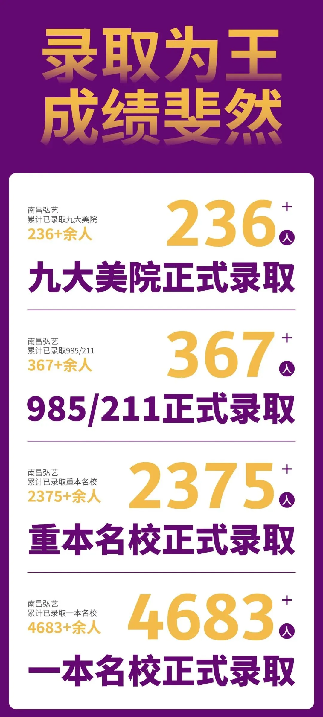 ◎累计录取重本名校2375余人 一本名校4683余人