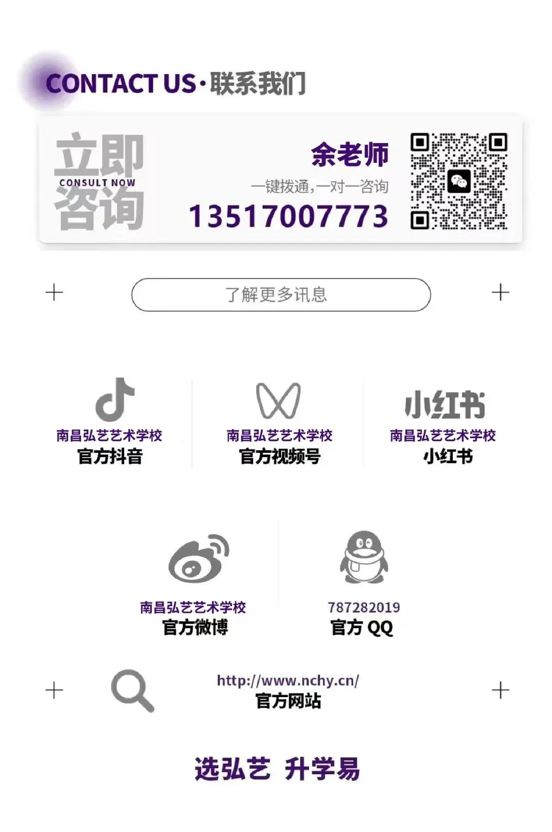 弘艺独创“2+5+N”培养模式,以“教学+行政”双核驱动管理,确保学生高效学习与身心健康;通过“专业定向、分层筑基、实战研学、应变调适、冲刺应考”五步教学法,精准攻克艺考全流程;更提供“培训+报考+就业”的N年长效保障。我们致力于让每一位学员不仅赢在艺考,更收获长远的职业与人生发展。