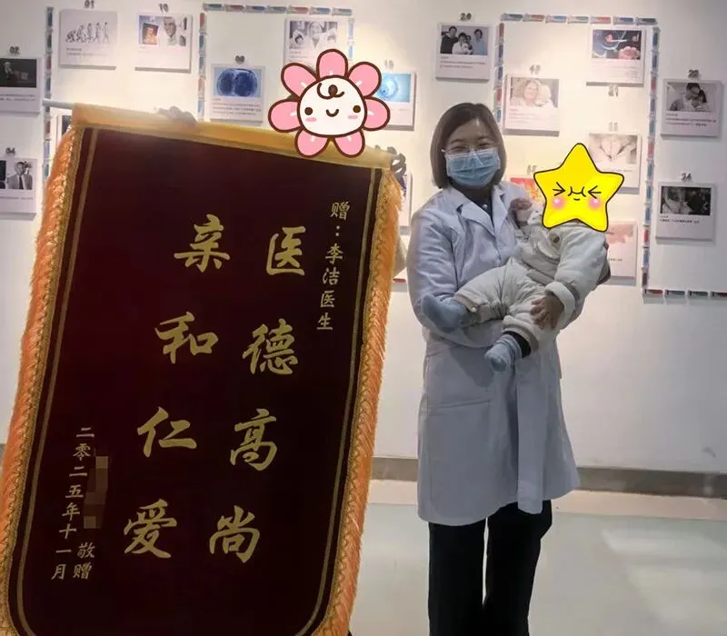 2025年11月,赵楷 (化名) 与周文丽 (化名) 夫妇抱着出生仅3个月的健康宝宝,专程来到南昌市生殖医院,将一面满载感恩的锦旗送到生殖医学科李洁主任手中,感谢其帮助夫妻俩圆了家庭生育梦。锦旗上“医德高尚 亲和仁爱”八个大字彰显了对李洁主任医德医风的高度评价和认可,其背后是夫妻俩长达5年的艰辛求子路,更是南昌市生殖医院在生殖医学领域,精准诊断免疫性不孕、定制个性化治疗方案的又一成功实践。