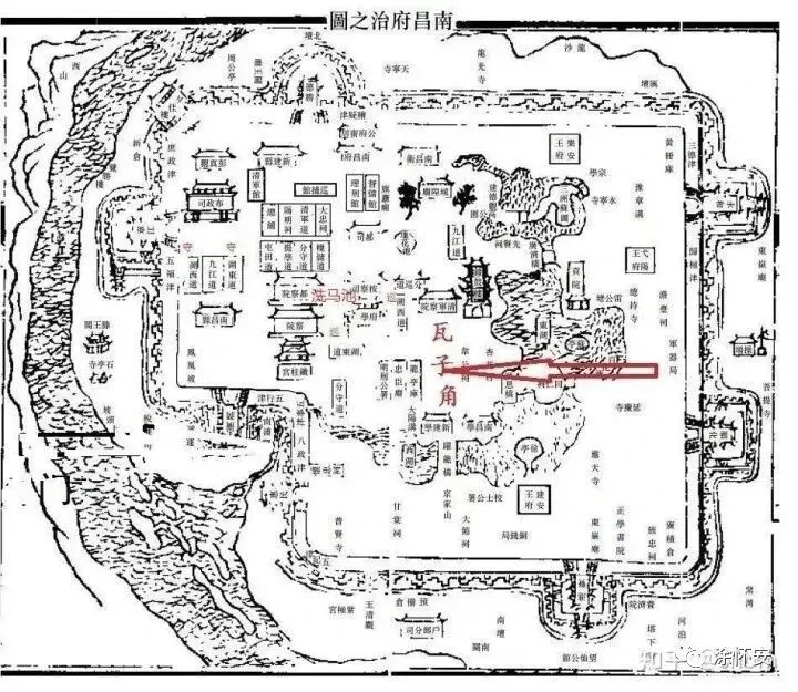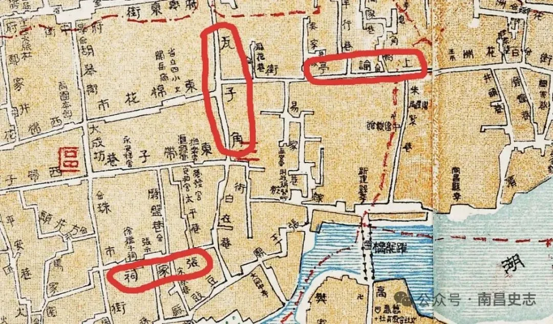 1926年《南昌市全图》中的瓦子角与上谕亭,张家祠