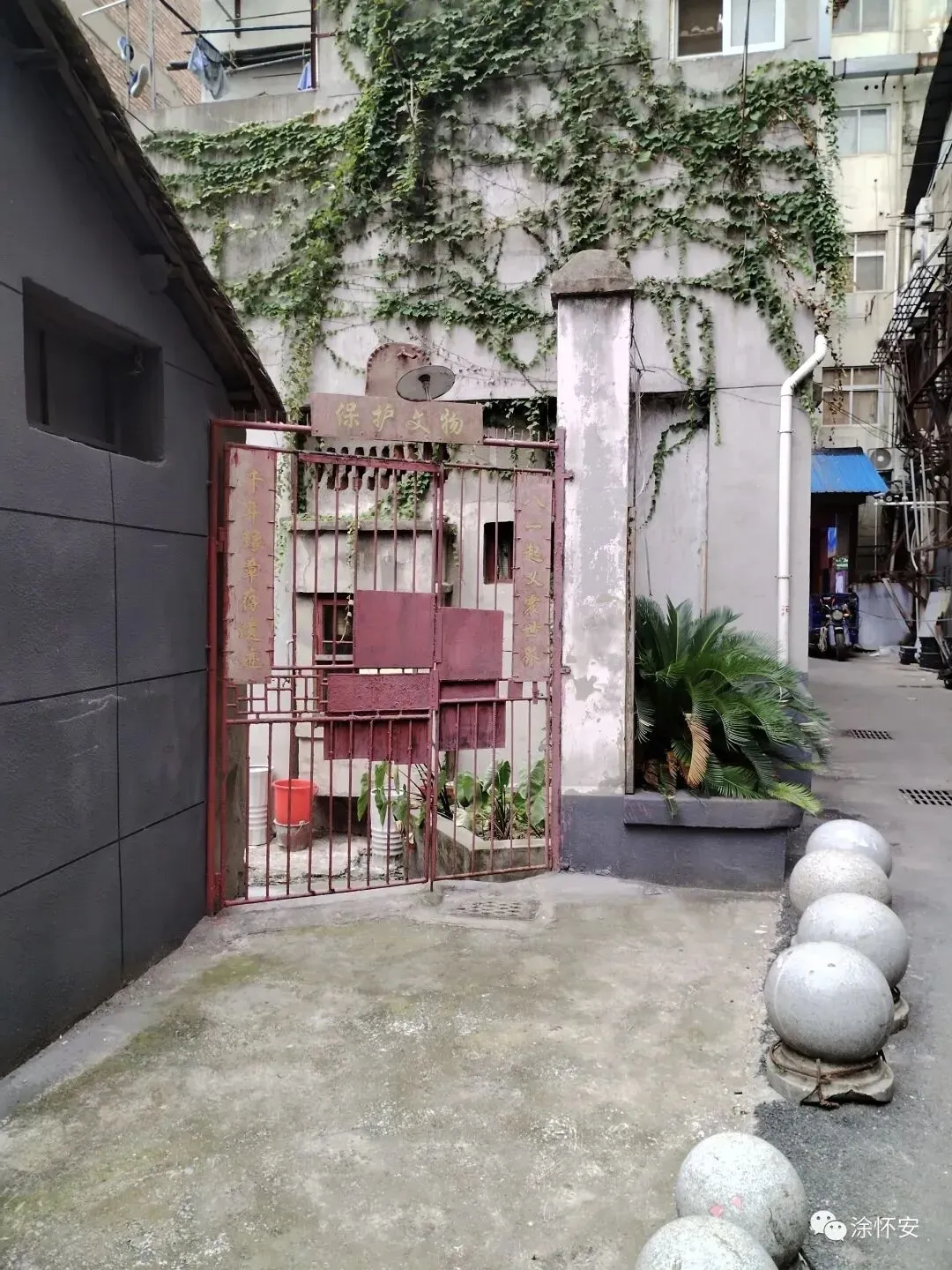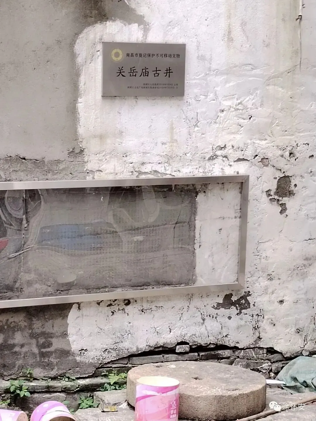 现在古井周边,还有两块功德碑,一块是清光绪年间,一块是民国的。被南昌市政府列为不可移动文物古迹保护,关岳庙古井也是南昌最古老的水井,功德碑文上祥细记录了某某商号,商铺,某人捐款多少介绍,据邓重峻说就是这个二层房屋有一百多年历史,曾是关岳庙东厢房,后庙主卖给邓重峻岳父家,当时邓重峻岳父陈维柏是中共地下党员,南昌贯彻日报社采访员,南昌八一起义前夕,贯彻日报社胡纳生社长,陈资始中共地下党负责人,陈奇涵开国上将与朱德元帅为起义之事经常联系,地下党领导们为了商议起义事项,掩人耳目,就是在邓重峻岳父家里密商起义之事宜。这里也曾经是中共秘密情报站,情报传递点,掩护过共产党负责人,八一起义之后,为了躲避追逋,陈资始中共地下党领导人曾住在邓重峻家里半个月。后化妆成渔民,被陈维柏掩护送出南昌城。