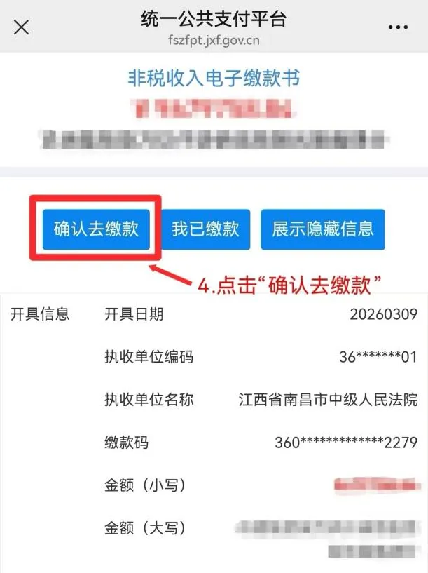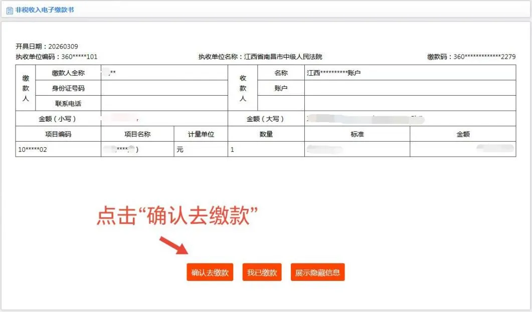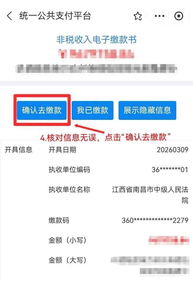 ➢ 5.核对缴费信息,点击“确认去缴款”,按提示完成支付。