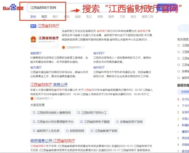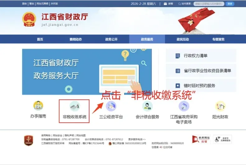 ➢ 2.在江西省财政厅官网“政务服务”模块点击进入“非税收缴系统”;