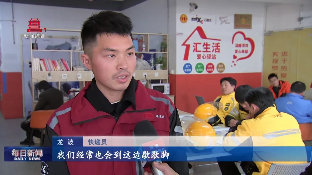 快递员龙波:“我们经常也会到这边歇歇脚,就像一个家的港湾一样,我们有时候闲暇的时间 在这边可以看一下书,充实一下自己。”