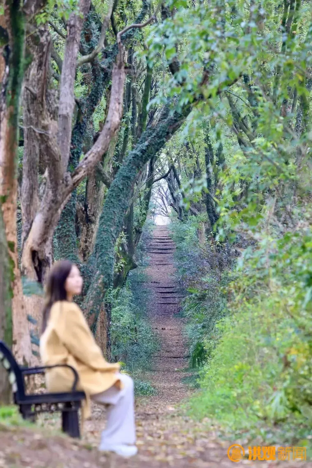 这里被称为南昌版的“宫崎骏森林”,林间步道蜿蜒如《千与千寻》中的秘境,薄雾缭绕时,木质台阶在斑驳光影中延伸,仿佛闯入童话世界。