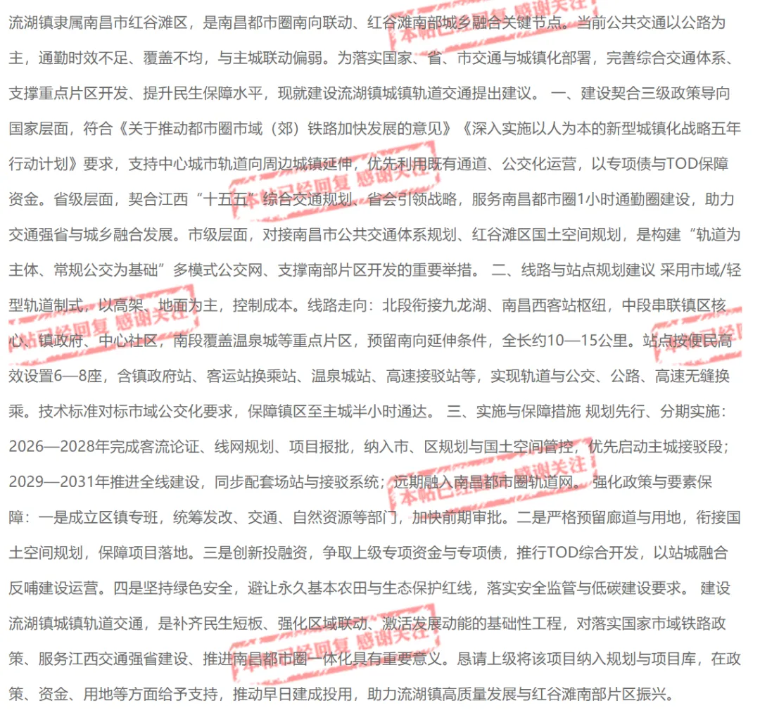 核心内容是:流湖镇隶属南昌市红谷滩区,是南昌都市圈南向联动、红谷随南部城乡融合关键节点。当前公共交通以公路为主,通勤时效不足、覆盖不均,与主城联动偏弱。