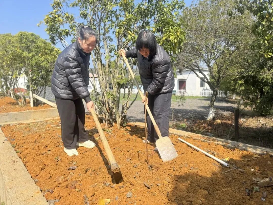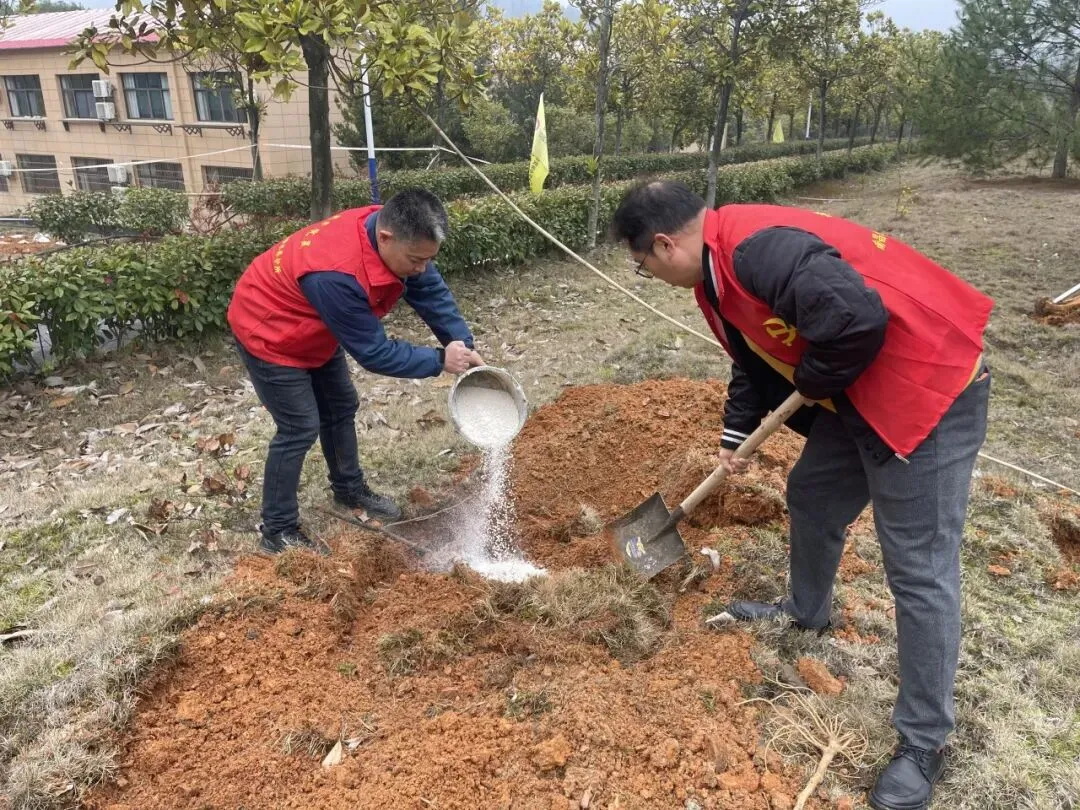 栽种新苗的同时,大家还对院内现有杨梅、枇杷、板栗树进行松土、施肥养护,清除根部杂草、均匀施肥压实,为树木生长提供养分。随后对院内花草树木逐一除草,院落绿化环境得到改善。