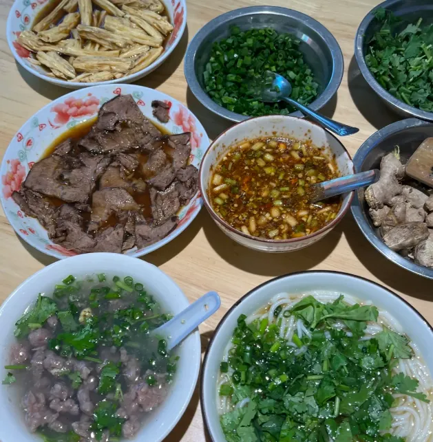 🥣 瑞金牛肉汤·极简做法这道菜讲究一个“快”字。牛肉必须现切,薄如蝉翼,用红薯粉抓匀上浆。锅里水烧得滚沸,姜末要多,把肉片抖散下锅,数十秒,肉片变色即捞。撒上葱花,淋点香油,关键是那口汤,得是煮肉的原汤,鲜得掉眉毛。