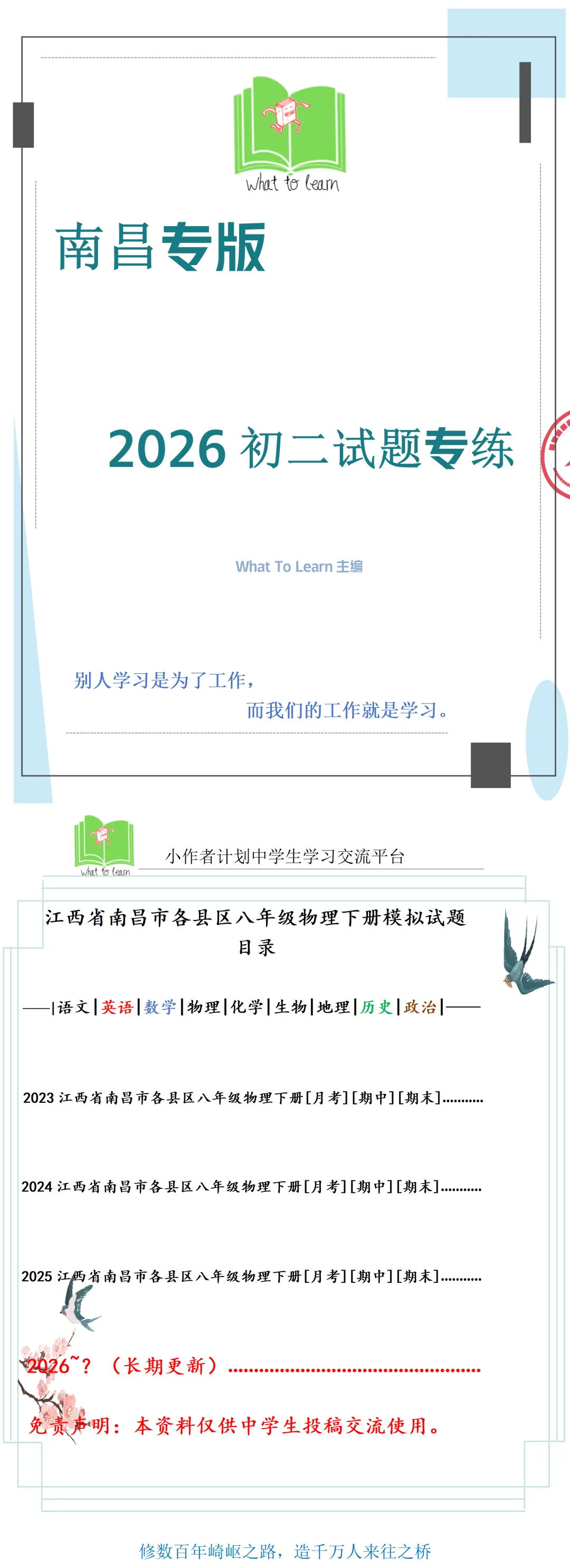 >2026年南昌各县区八年级物理下册第二学期月考期中期末新课标试题及答案