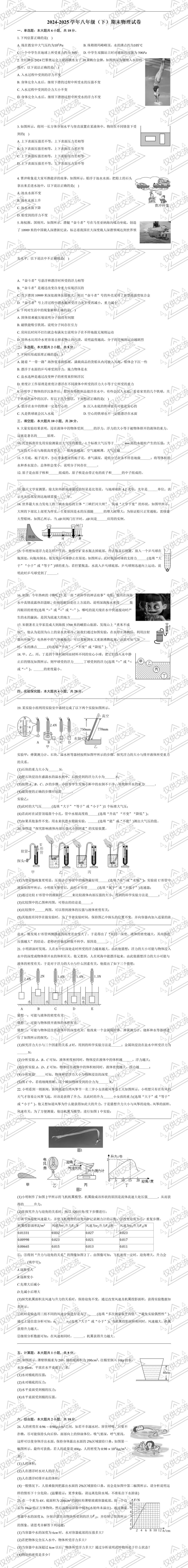 2026年南昌各县区八年级物理下册第二学期月考期中期末新课标试题及答案