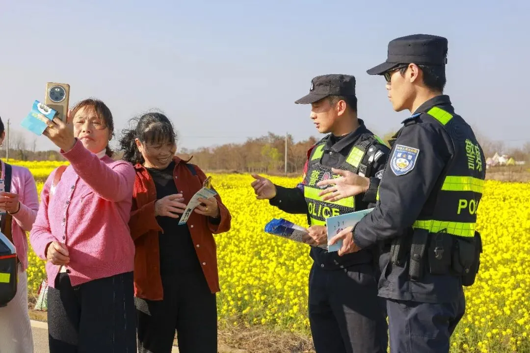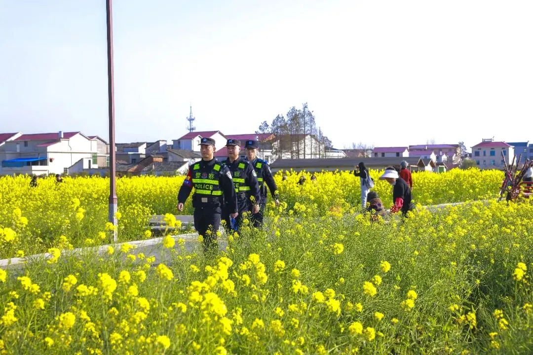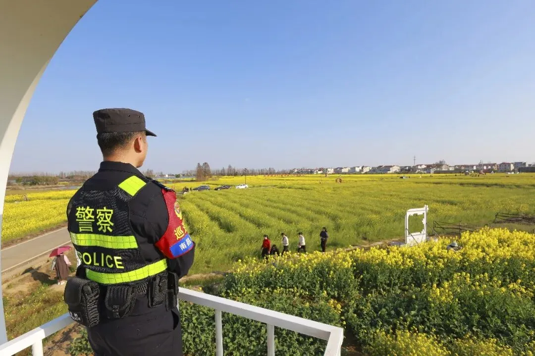 早春三月,南昌县塔城乡湖陂村、南新乡山上村、银三角街道浒南村的千亩油菜花竞相绽放,金黄的花海吸引了大量游客前来踏青打卡。面对春日旅游热潮,南昌县公安局立足“三级巡防”机制,动态布警、精准施策,将警务工作延伸至景区景点和田间地头,用“藏蓝”身影守护“金黄”风景。