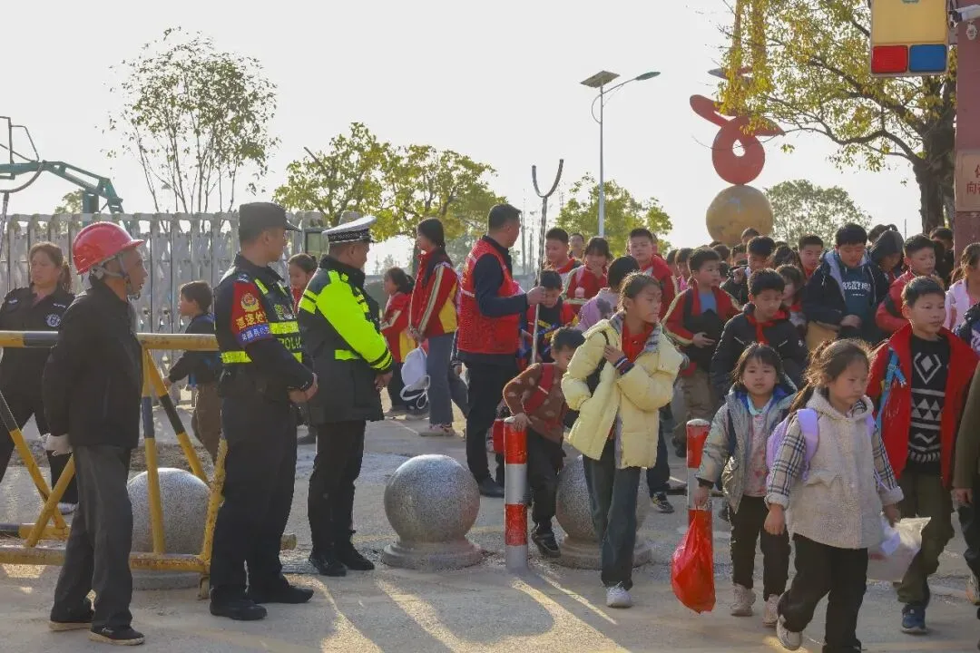 “车辆请有序停放,不要占用乡村道路。”上午九点半,在塔城乡湖陂村千亩油菜花海旁,几名身着荧光绿背心的巡逻警员正在疏导交通。就在一小时前,他们还在旁边的乡镇中学门口执行护学岗任务。
