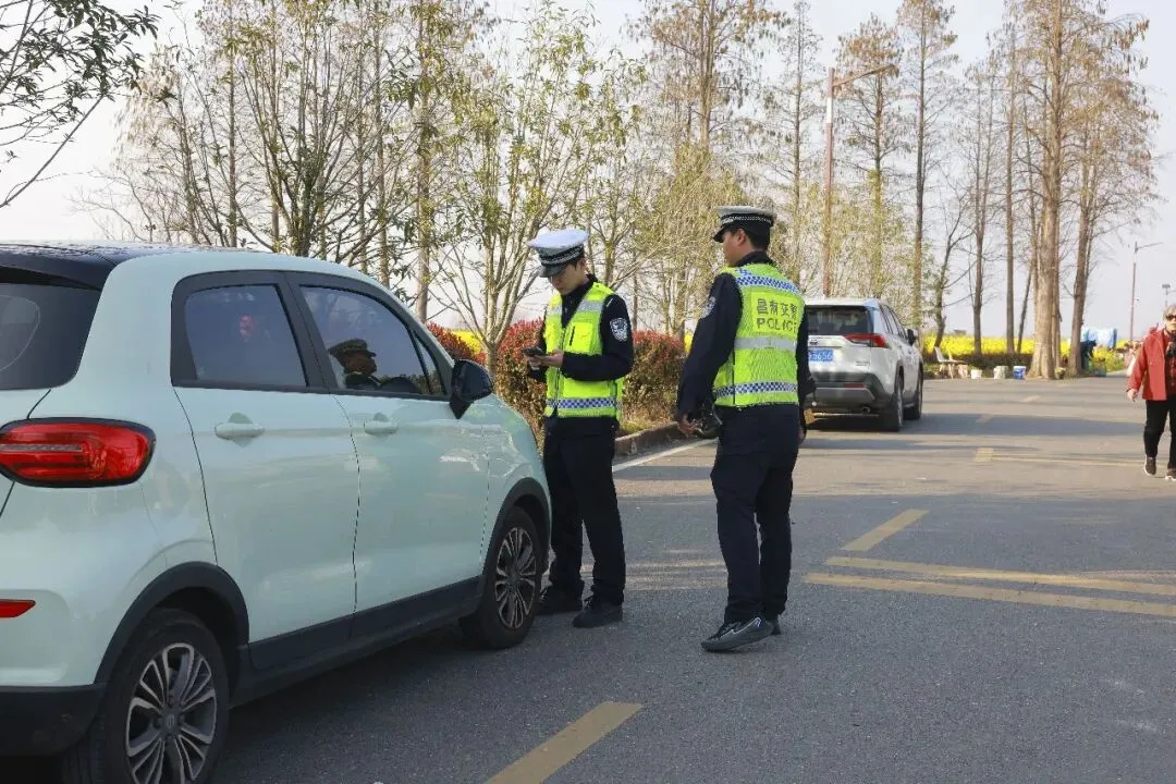 春游热潮带动了乡村旅游经济,景区周边的农家乐、民宿、小餐馆生意日渐红火。各派出所加大对景区周边“九小场所”的排查力度,重点围绕消防设施、实名登记、燃气使用等内容开展拉网式检查,督促经营者落实安全主体责任。在银三角浒南村,民警联合相关部门对早酒集市、餐饮摊点逐一走访;在塔城湖陂村,民警深入乡村咖啡馆和农家乐旅店,面对面叮嘱经营者守好安全底线。在抓好安全检查的同时,民警还将矛盾纠纷排查向周边村庄延伸。针对游客与村民因停车、拍照、踩踏青苗等易引发的涉旅纠纷,辖区派出所组织警力深入景区村落走访农户,及时掌握社情民意。对因游客增多引发的邻里矛盾、停车占地纠纷,民警第一时间介入调解,将不稳定因素化解在萌芽状态。一家家店铺的细致排查,一次次走访中的耐心调解,既守住了“烟火气”里的安全底线,也营造了和谐有序的乡村旅游环境。从市区前往塔城、南新等地的油菜花海,105国道、绕城高速等主干道是游客出行的必经之路。周末客流高峰期间,车流量大幅增加,交通安全压力随之上升。南昌县公安局交管大队强化国省道沿线巡逻力度,及时发现处置交通事故和拥堵点位,保障主干道通行顺畅。