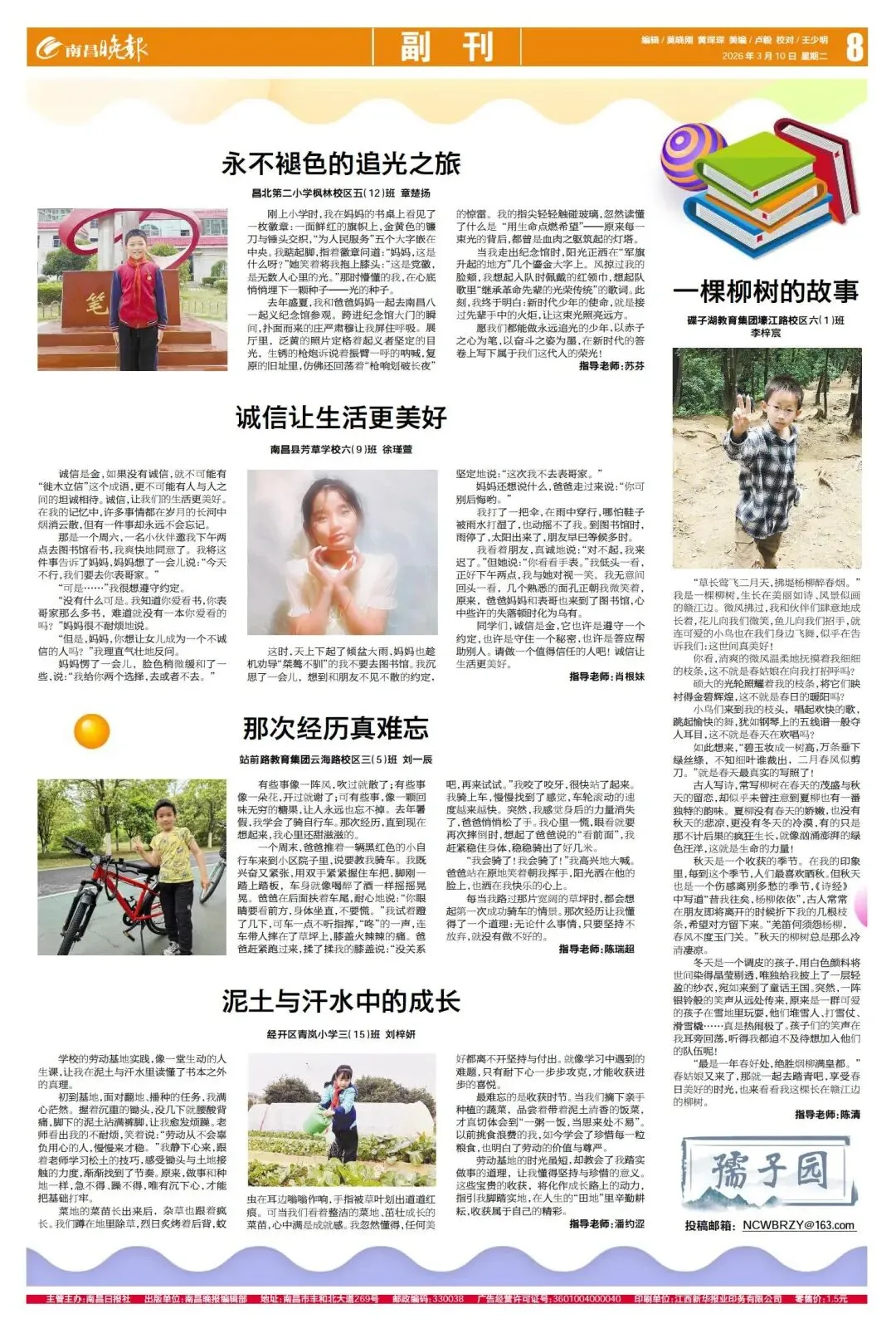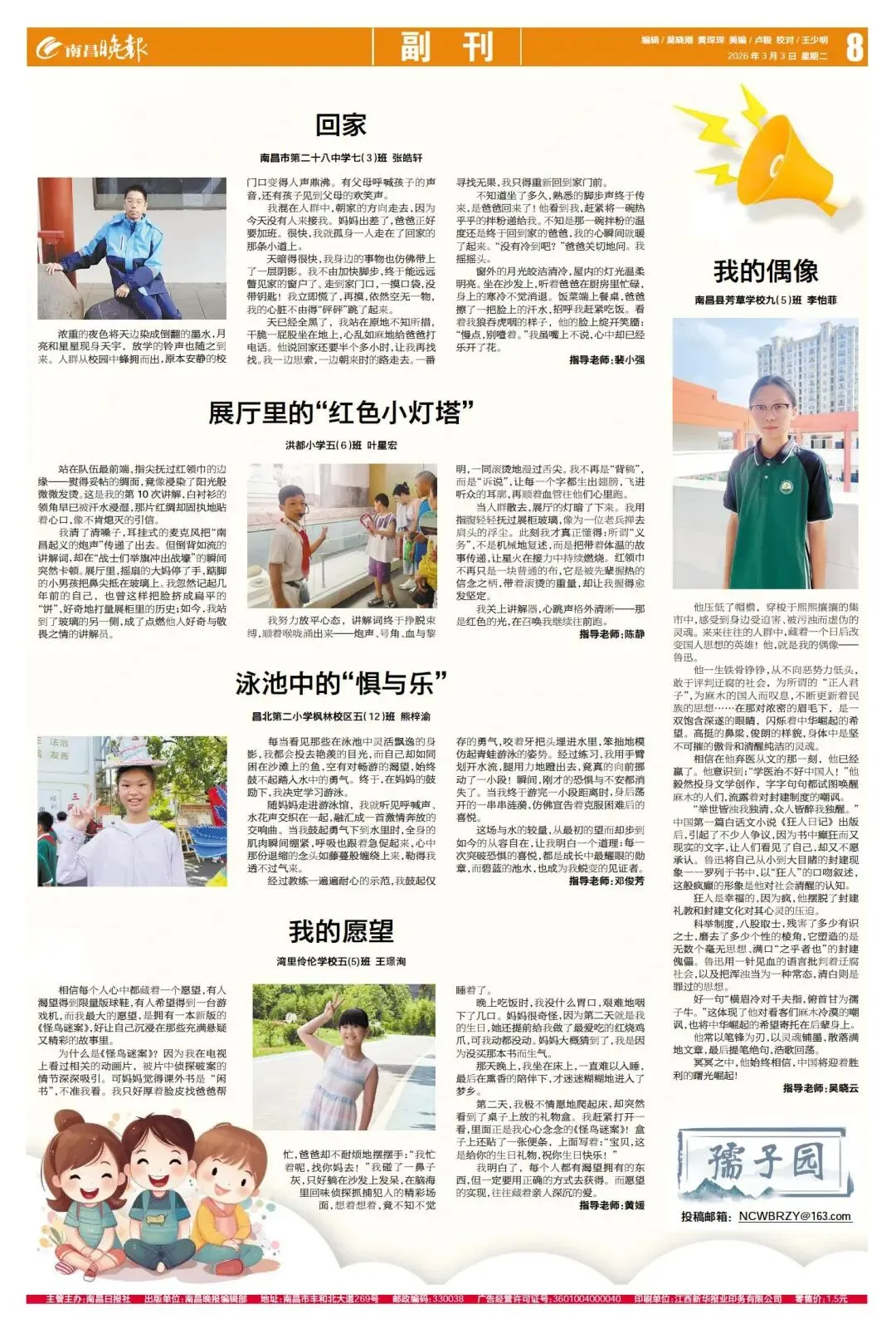 《南昌晚报》“孺子园”专栏的版面
