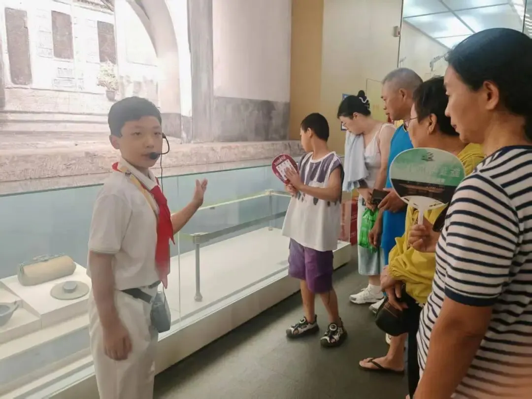 我清了清嗓子,耳挂式的麦克风把“南昌起义的炮声”传递了出去。但倒背如流的讲解词,却在“战士们举旗冲出战壕”的瞬间突然卡顿。展厅里,摇扇的大妈停了手,踮脚的小男孩把鼻尖抵在玻璃上。我忽然记起几年前的自己,也曾这样把脸挤成扁平的“饼”,好奇地打量展柜里的历史;如今,我站到了玻璃的另一侧,成了点燃他人好奇与敬畏之情的讲解员。