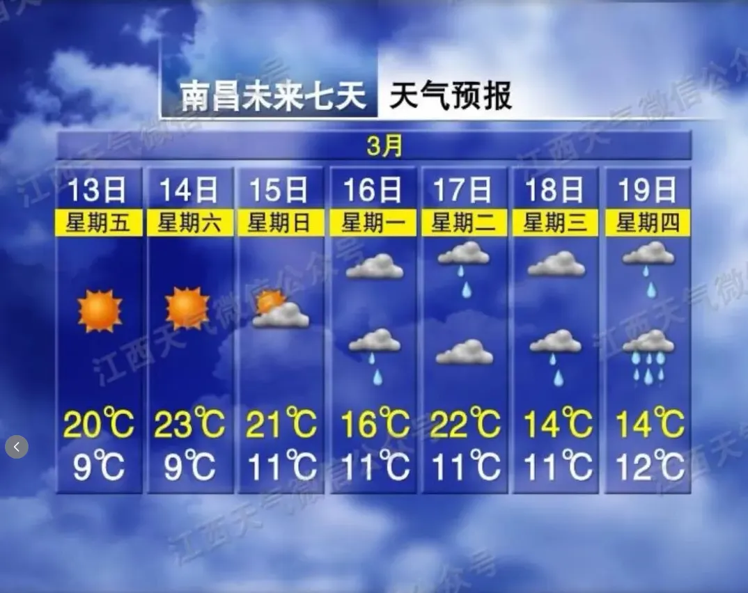 >晴暖余额不足!下周南昌天气大反转,降雨模式即将开启