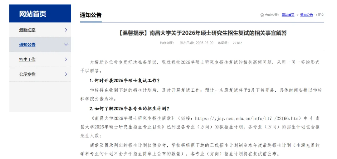 可提前了解上一年的调剂公告,做好相应的准备,如:《南昌大学2025年硕士研究生招生调剂公告》。