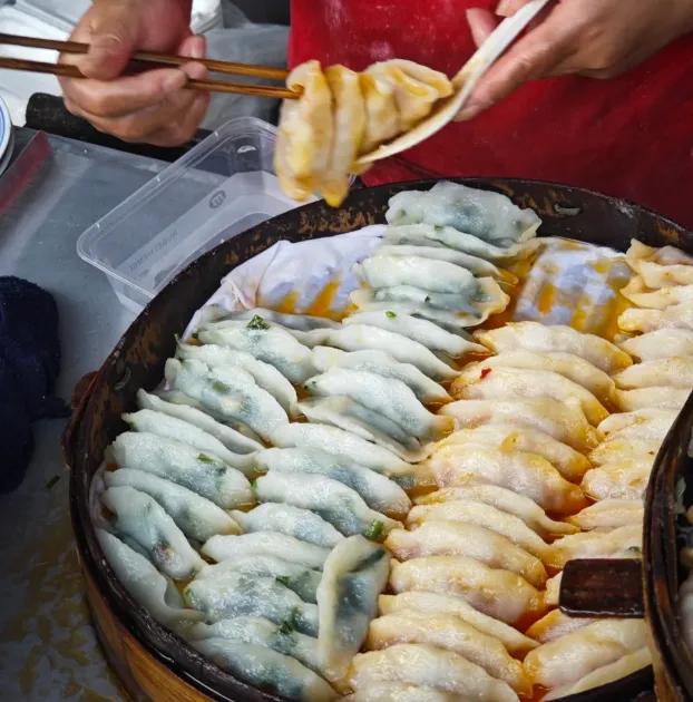 早上可以从一碗冷粉开始,米粉细滑,拌上蒜水、辣油和酸豆角,入口先凉后辣,人一下就醒了。中午建议找家本地馆子点碱水粑和小炒肉,碱香很轻,嚼劲却实在,配米饭很稳。晚上去吃饺子粑和油条包麻糍,前者软糯里带点脆,后者是“咔嚓”一下外壳碎开,糯米香立刻顶上来,甜咸交错,越吃越慢。