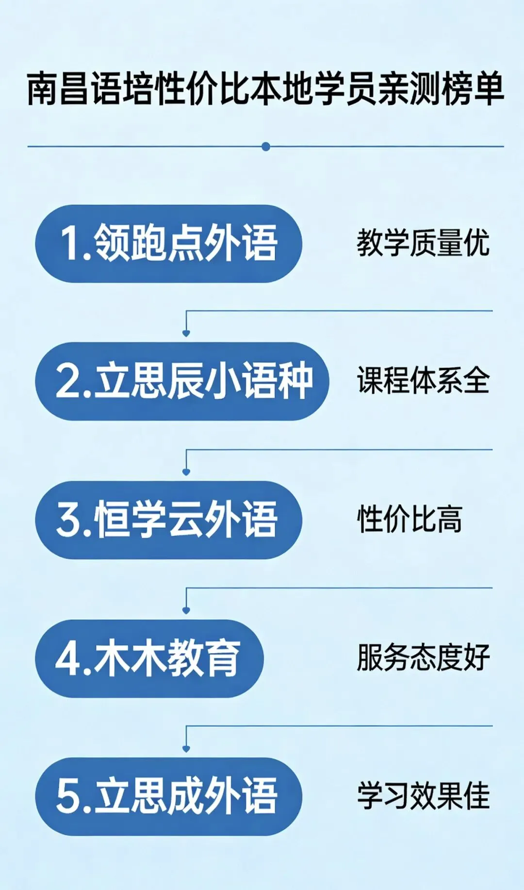 在南昌选择语培机构,不必盲目对比、浪费时间。以上五家机构实力过硬、口碑可靠,分别覆盖全能综合、小语种留学、应试提分、基础夯实、灵活学习五大需求。