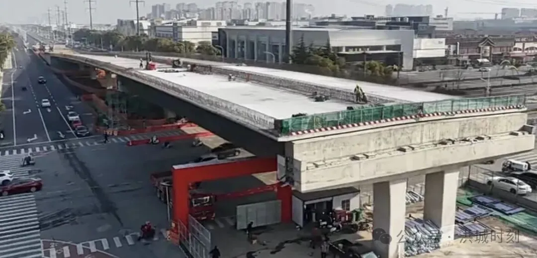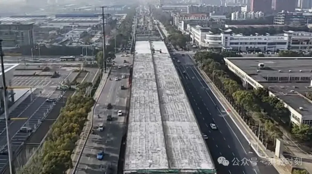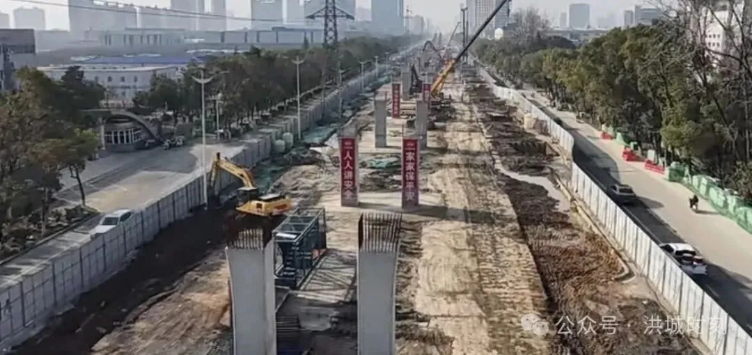 洪腾高架至南昌大道段墩柱与梁体施工全面展开。