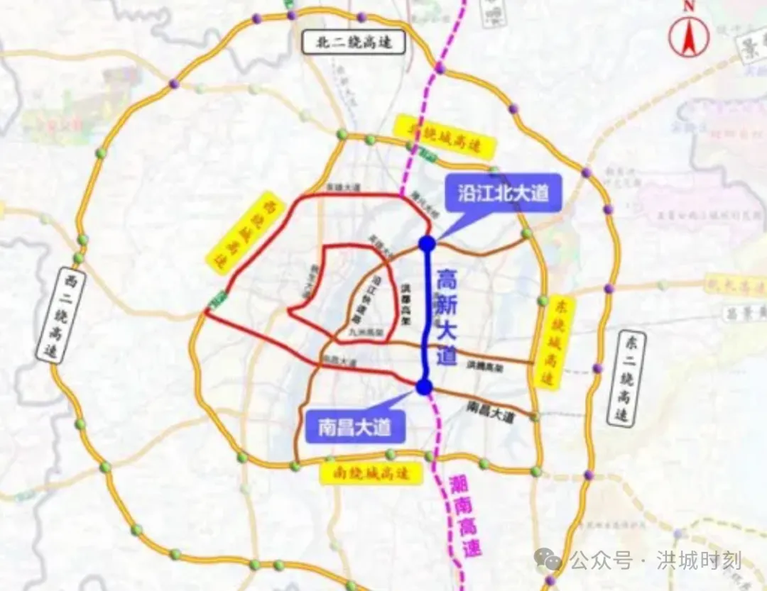 从规划看,高新大道快速化改造工程北起沿江北大道,南抵南昌大道,全长约14.9公里,以“主辅路双系统”勾勒城市快速交通骨架。主路设计时速80km/h,辅路设计时速50km/h。