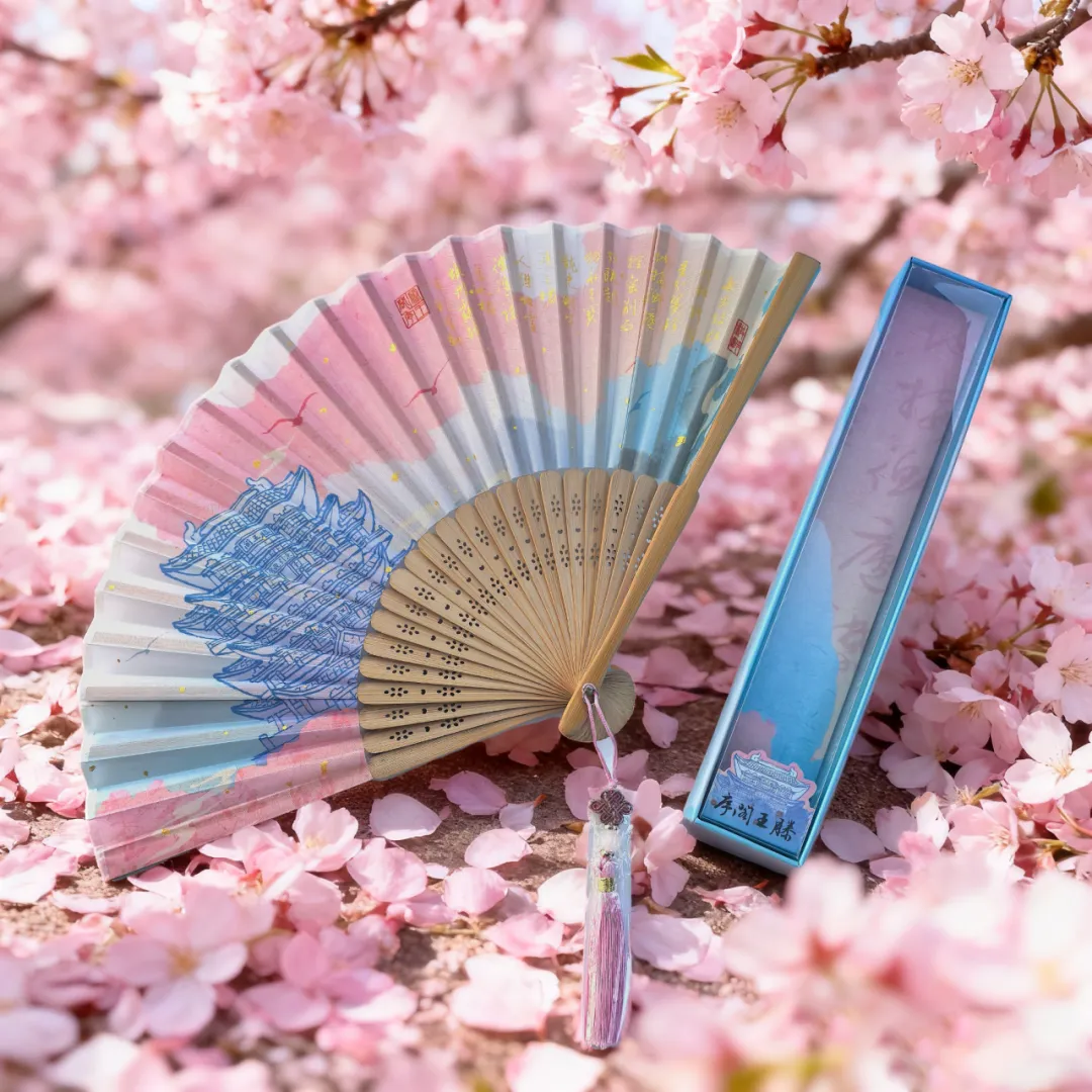 这把滕王阁序淑女扇,扇面上是千古名篇《滕王阁序》的书法。展开轻摇,仿佛能感受到千年前文人的风雅。春日的阳光温暖而不灼人,偶尔扇动两下,既实用又雅致。
