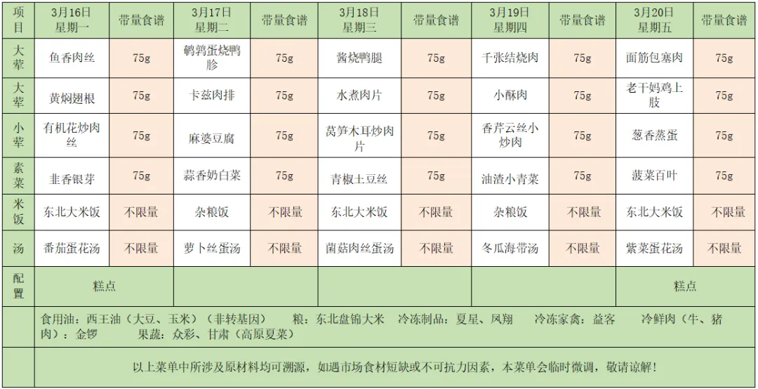 南昌路小学第3周营养食谱(3.16-3.20)