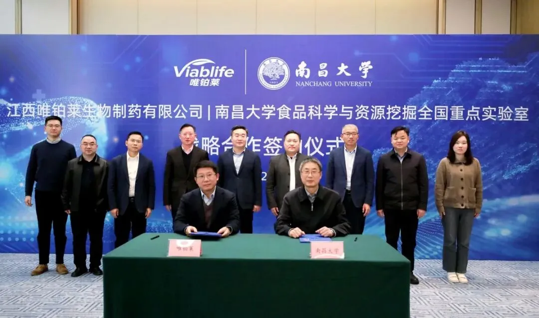 3月10日,江西唯铂莱生物制药有限公司与南昌大学食品科学与资源挖掘全国重点实验室战略合作签约仪式在赣江新区隆重举行。杭州市南昌商会会长张建平作为特邀嘉宾出席仪式,共同见证商会监事长企业与顶尖高校科研平台的深度合作。