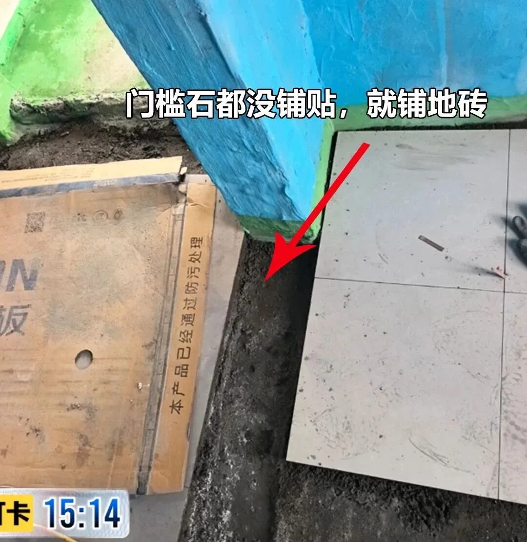 近日,在我们的工地巡检中,发现一处地砖铺贴工序不符合规范: