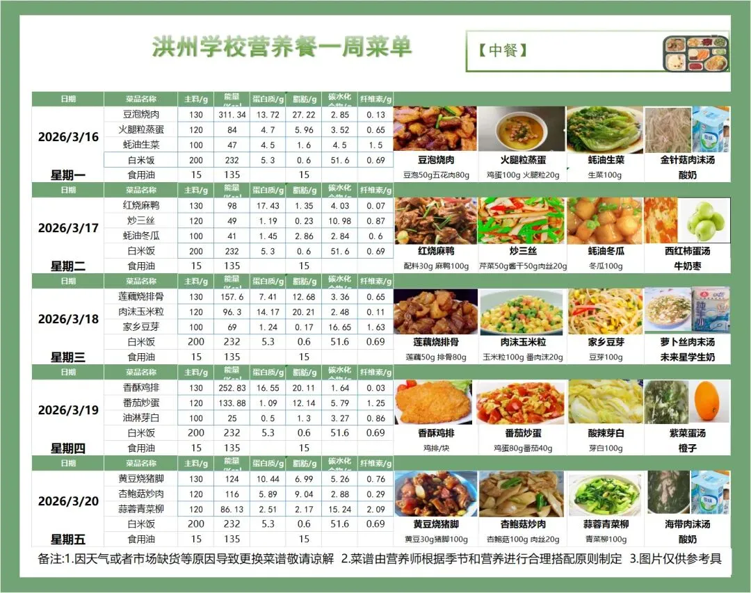 为了让您清晰了解孩子的在校饮食情况,现将本周营养食谱公布如下。