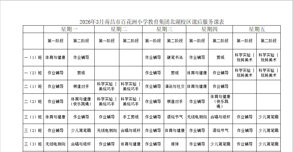 南昌市百花洲小学教育集团北湖校区关于2025-2026学年第二学期课后服务工作公示