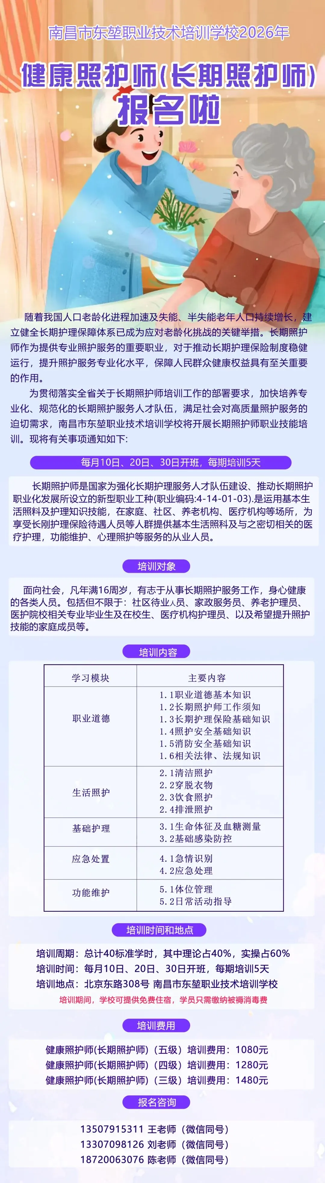 >南昌市东堃职业技术培训学校2026年健康照护师(长期照护师)报名啦 !