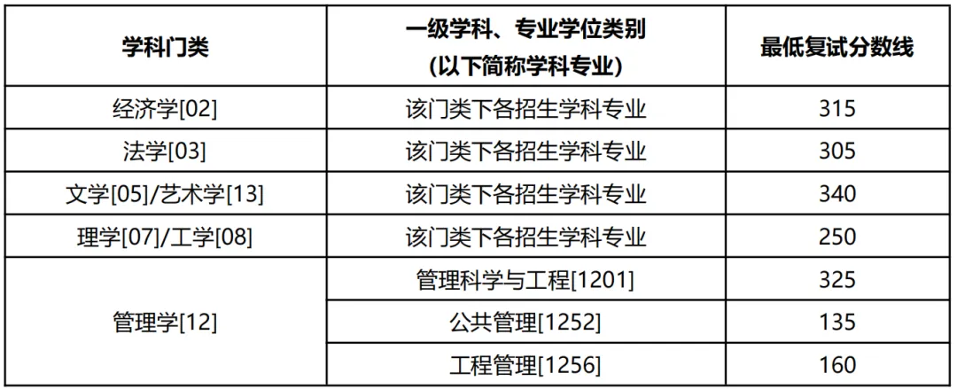 一志愿报考“退役大学生士兵计划”考生的最低复试分数线见下表:
