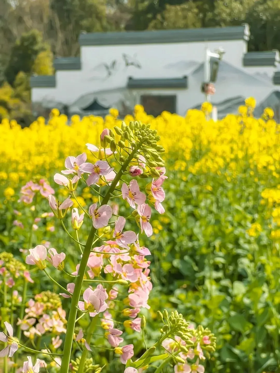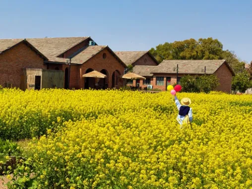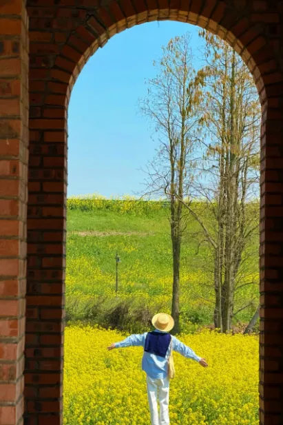村子里藏着许多可爱的涂鸦墙,撞色撞得刚刚好。站在墙边,让油菜花探出半个画框,随手一拍,都是春天给的限定款。