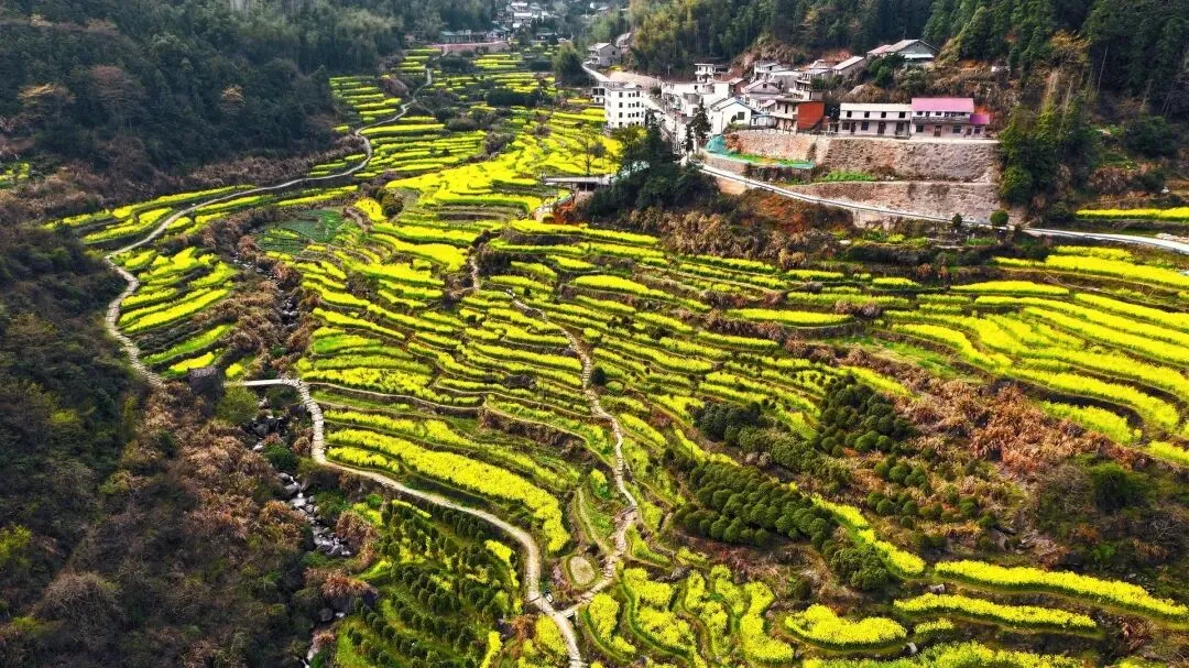 站在高处俯瞰,梯田如链似带,油菜花镶嵌其间,远山如黛,近花如金。若是恰逢晨雾未散,整个村庄便像浮在云海之上——原来,仙境真的可以抵达。