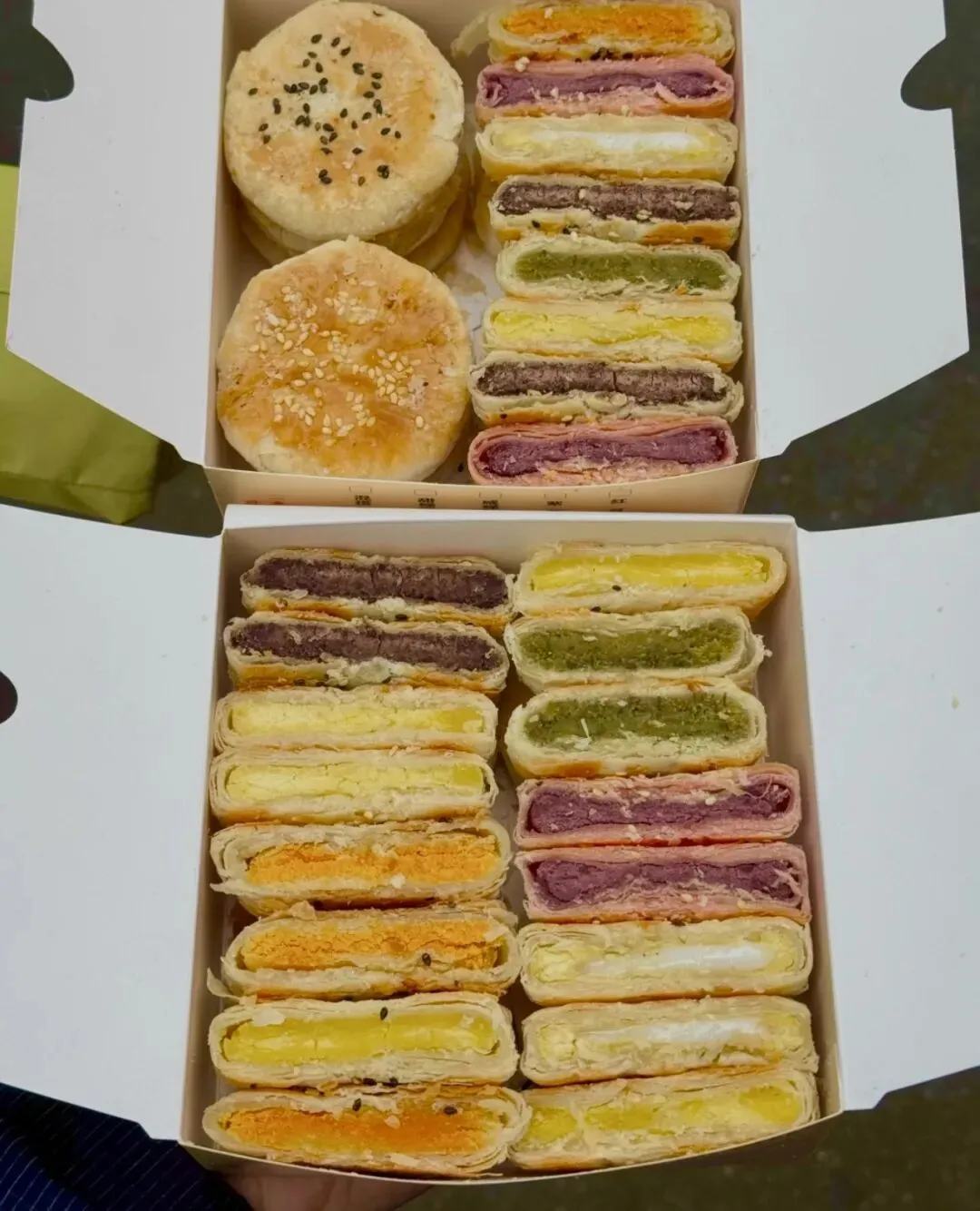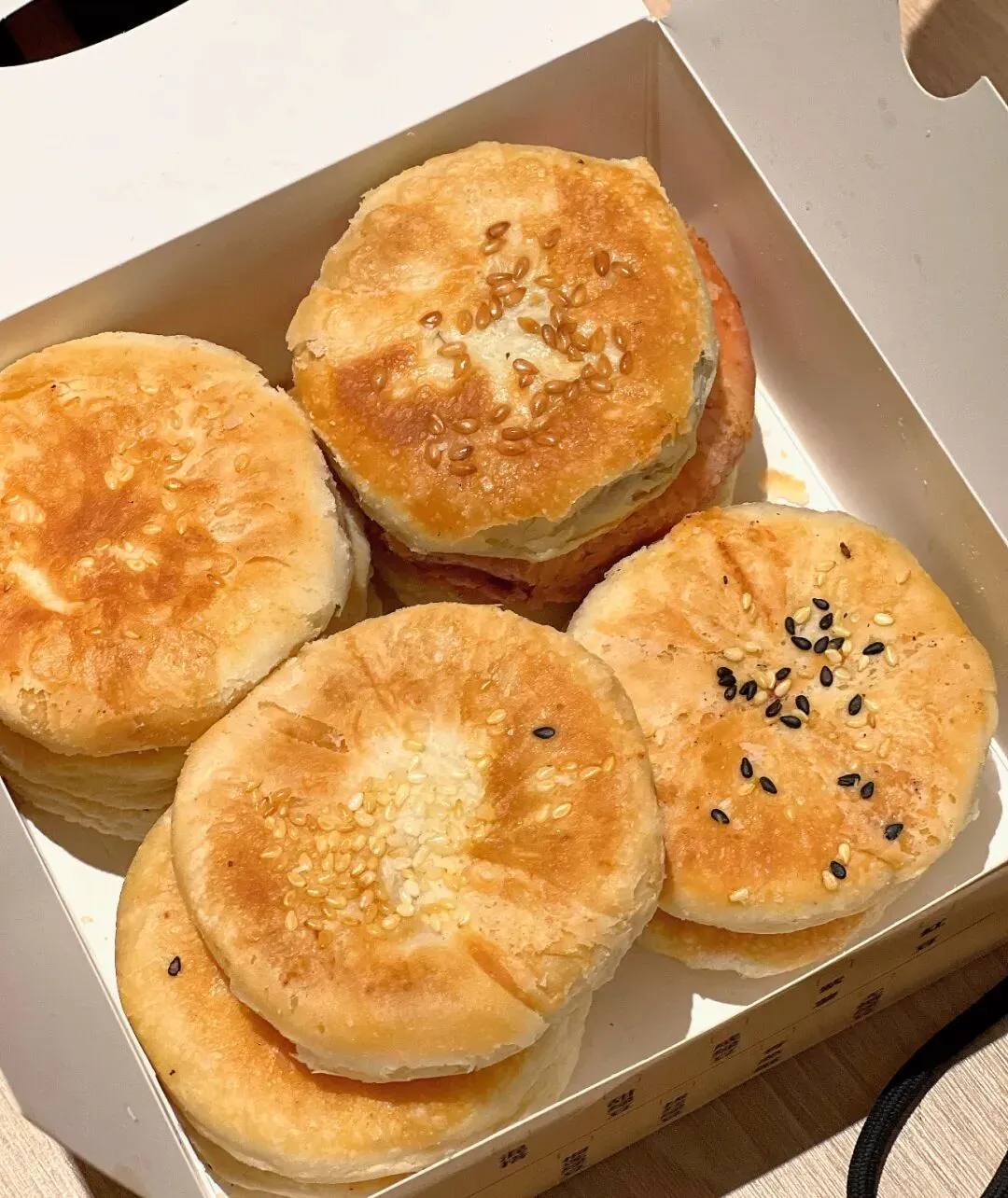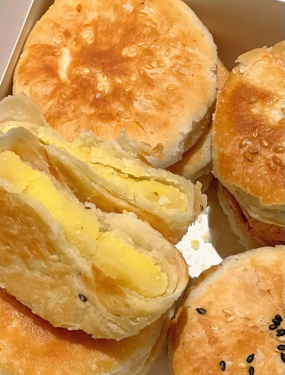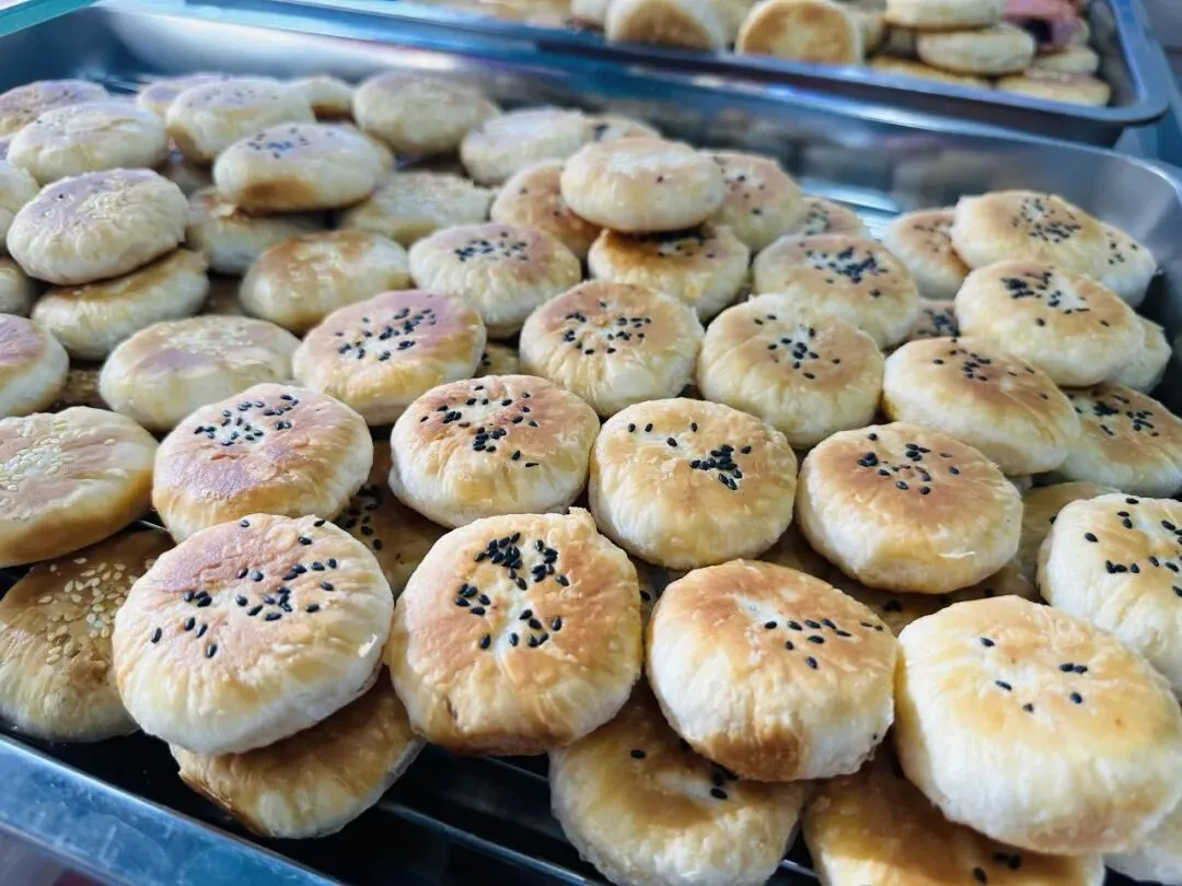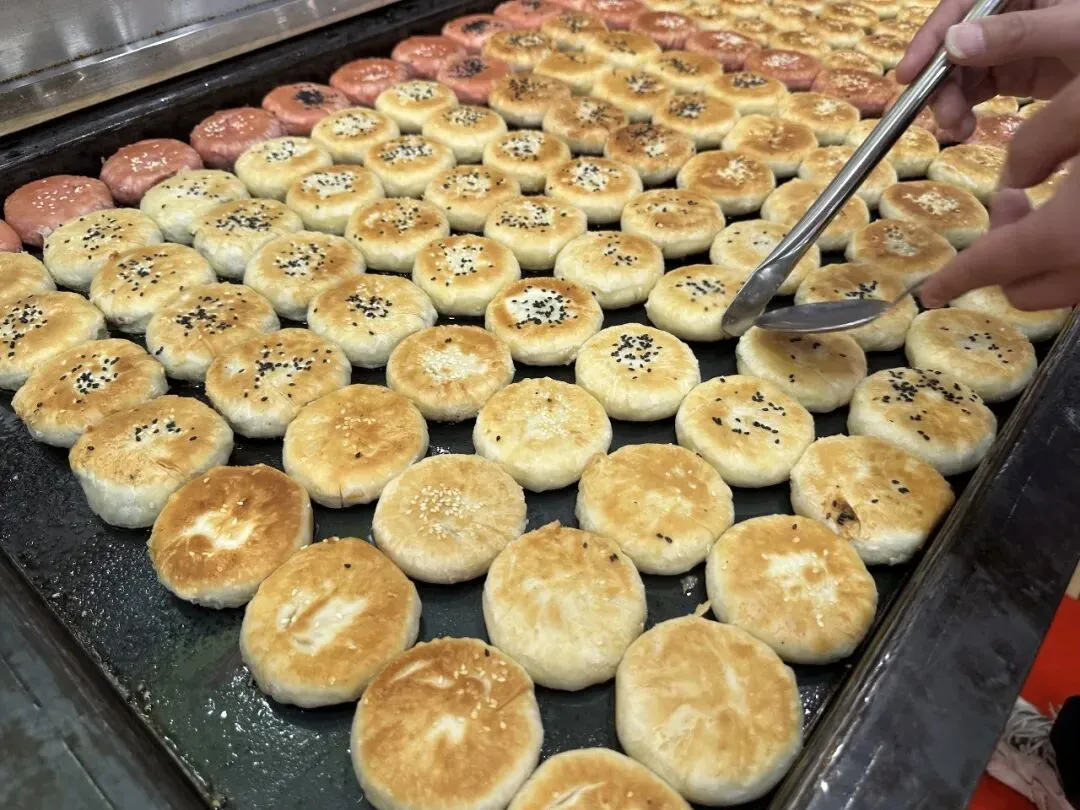老板是真的用心做饼!全程纯手工制作,每天现烤现卖,坚决不售隔夜饼,每一个都要精心烤够20分钟,刚出炉时焦香扑鼻,外皮酥到一碰就掉渣,咬一口直接香迷糊~