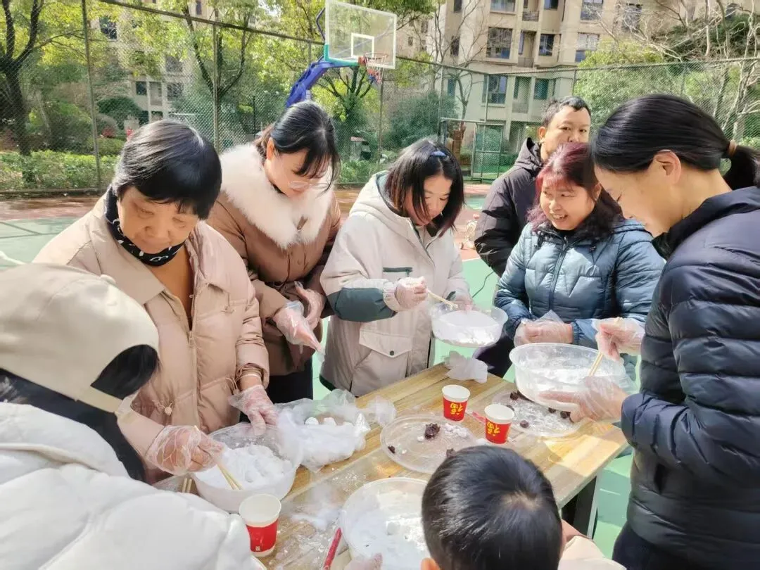 3月2日上午,中心花园广场支起长桌。糯米粉加水揉成团,芝麻馅裹进去,掌心一合便是白胖的汤圆。蒸汽升腾间,业主围站一圈,有的等着尝鲜,有的学着手法。白雾裹着糯香漫过人群,让三月的钰珑湾多了层人间的烟火气。