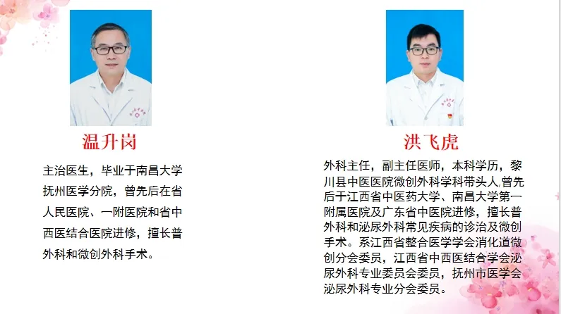 社会任职:江西省康复医学会外科快速康复分会 主任委员 江西省医师协会甲状腺外科医师分会 常务委员 江西省研究型医院甲状腺外科分会 常务委员 江西省科技专家库成员 《中国普通外科杂志》编委 中国医疗保健国际交流促进会甲状腺分会 青年委员 中国研究型医院学会甲状腺疾病专业委员会腔镜手术学组 全国委员 中国研究型医院学会甲状旁腺及骨代谢疾病专业委员会 全国委员