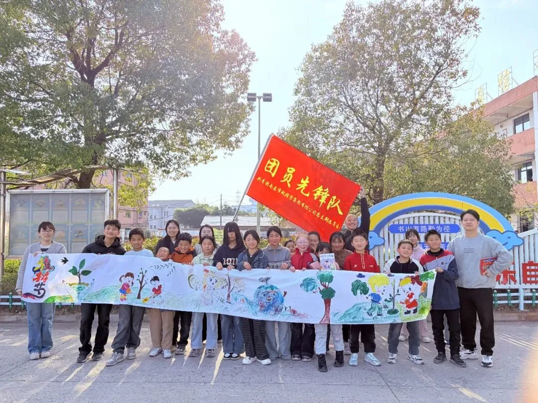 南昌市政投资集团青年团员联合公司驻村工作队,走进驻村派驻地泾口第一小学,温情开展“植绿护绿 童心共绘”植树节主题志愿活动,以青春之力播撒绿色希望,与孩子们携手共绘生态美好家园。青年团员们为孩子们送上精心筹备的图书礼物并同心协作描绘生态画卷,活动现场暖意融融、欢声笑语不断。(图文/程欣妍)
