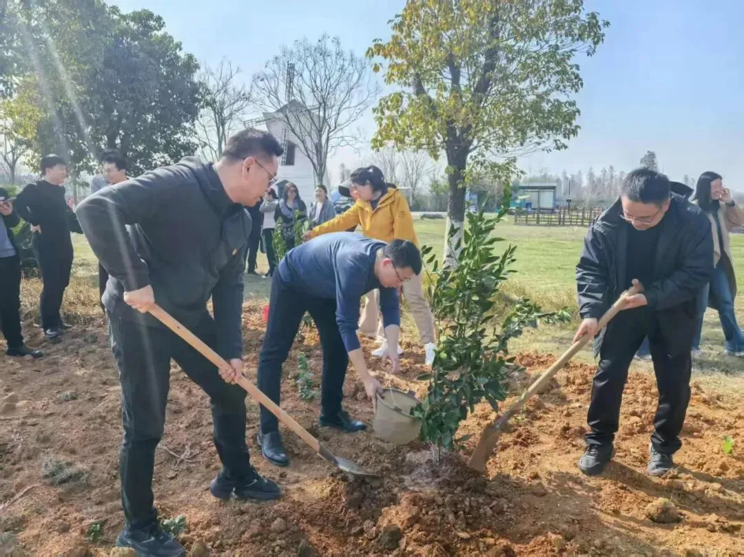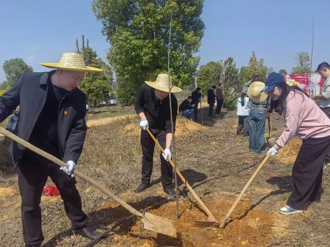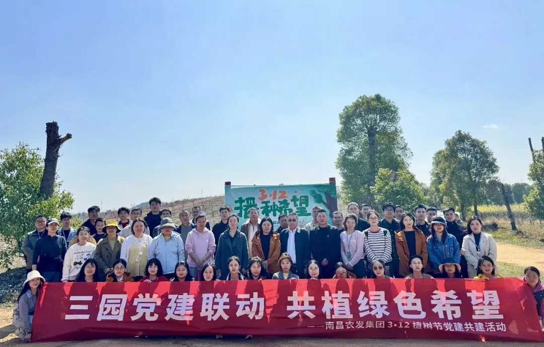 南昌农发集团本部一、二党支部联合陌上园、硒谷党支部,在南昌硒谷产业园开展“三园党建联动 共植绿色希望”植树节主题活动,以实际行动为园区添绿增彩。大家自由组队,2-3人一组默契配合,在技术人员指导下完成扶苗、填土、浇水等工序,亲手种下一株株碧根果树,并将写有姓名与寄语的认养牌悬挂枝头,许下与树苗共成长的绿色约定。(图文/胡嘉琪 陈颖洁)