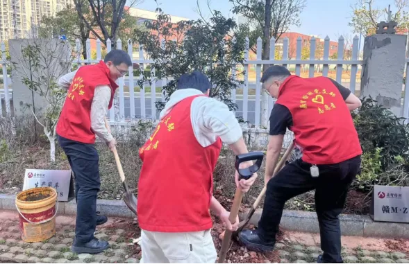 云上南昌组织全体党员、业务骨干及项目一线职工代表,赴市政陌上园开展“党建红引领生态绿,植树聚力奋战开门红”植树节党建融合主题活动,全体人员热情高涨、分工协作,挥锹铲土、扶苗填坑、踩实浇水,每一个步骤都一丝不苟。大家合力栽种下一棵棵“先锋树”“攻坚树”,在市政陌上园打造一片“云上南昌党员先锋林”,将生态文明建设、党建工作与公司生产经营、项目建设、安全生产工作有机结合。(图文/陈聪)