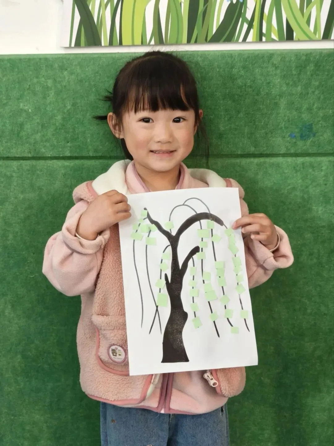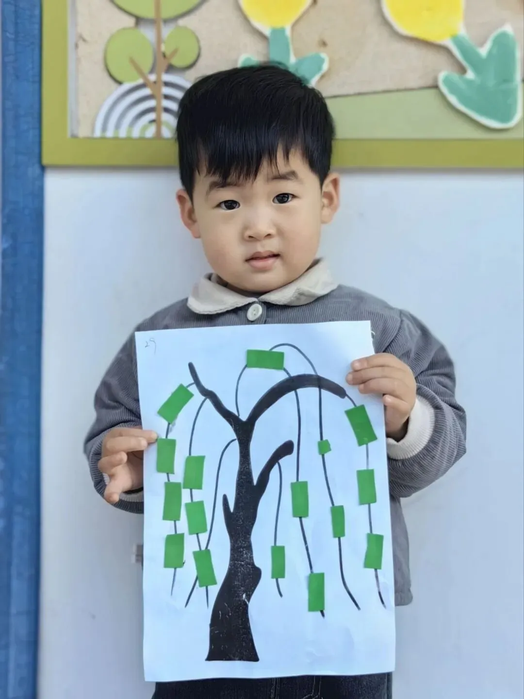 春风拂垂柳,巧手画春天。孩子们运用黏土,通过贴、揉、捏,创作出生动可爱的《垂柳》粘贴画。稚嫩的小手勾勒出春日柳枝的柔美,每一幅作品都是孩子眼中最美的春天,将绿色春意永远定格。