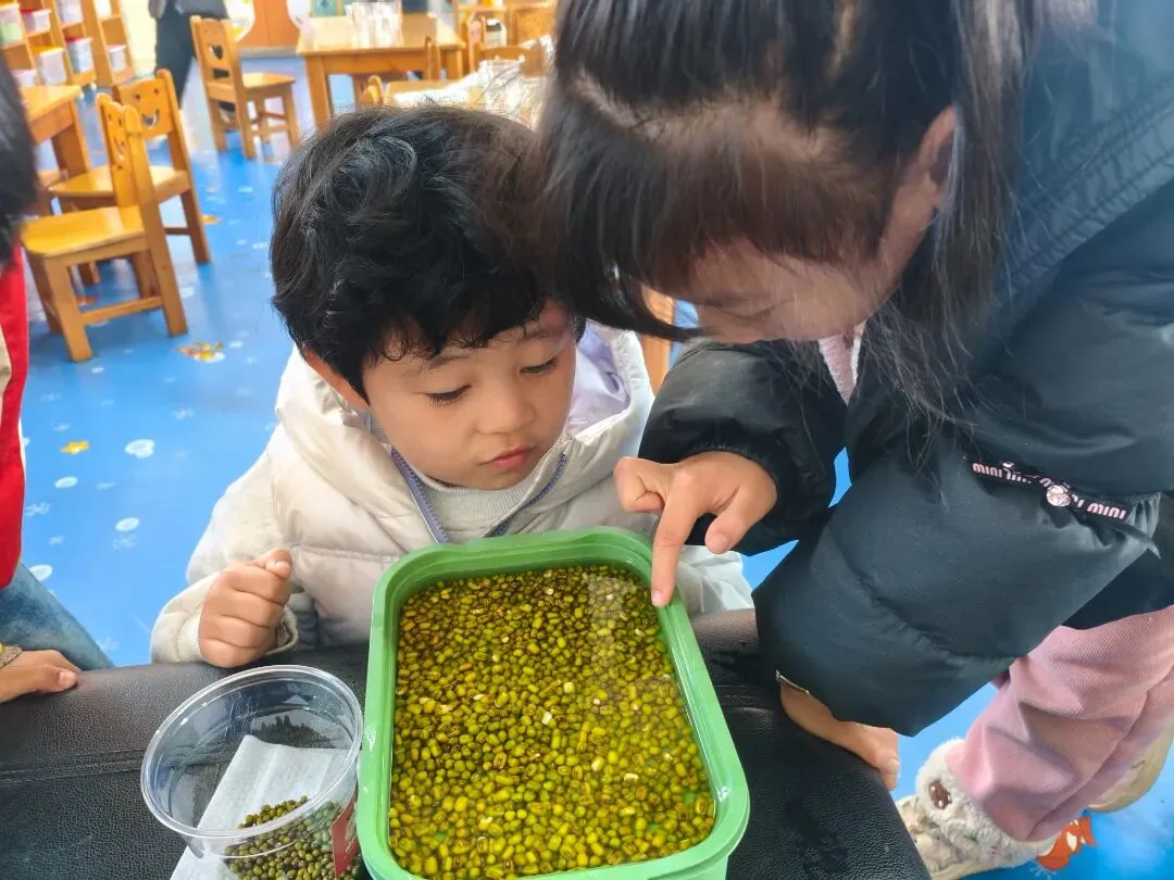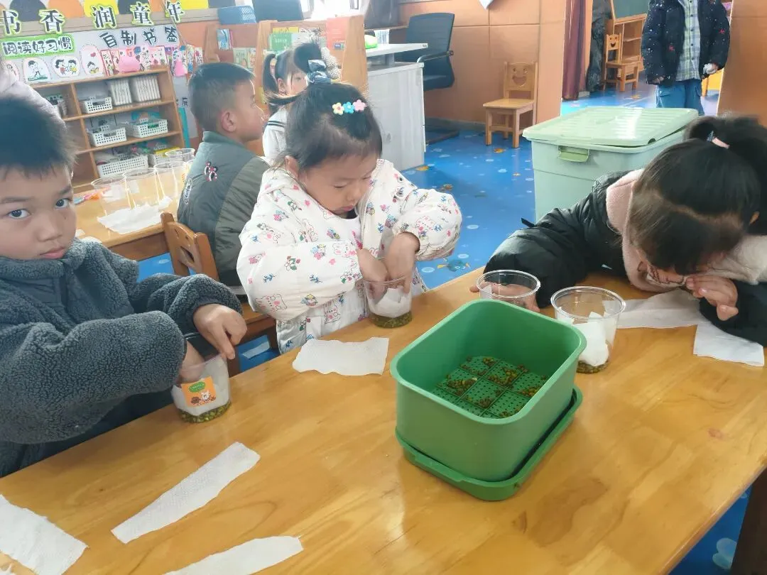 小小豆芽,大大生命力。班级里开启了趣味发豆芽活动,孩子们每天细心观察、定时浇水,见证绿豆从干瘪的小颗粒,慢慢长出嫩芽、舒展身姿的全过程。在日复一日的照料中,孩子们学会了耐心与责任,感受生命生长的神奇。