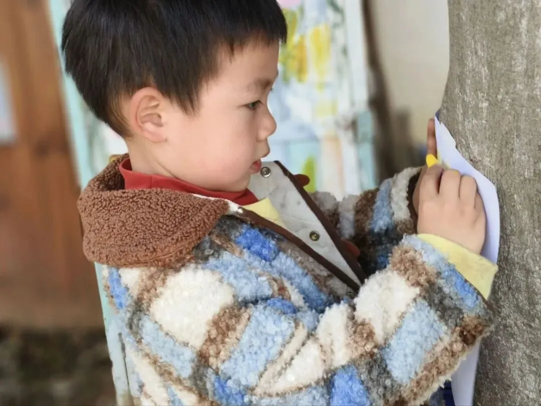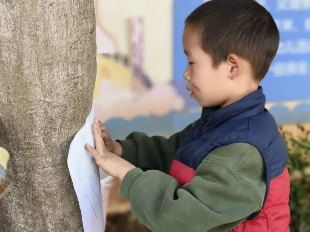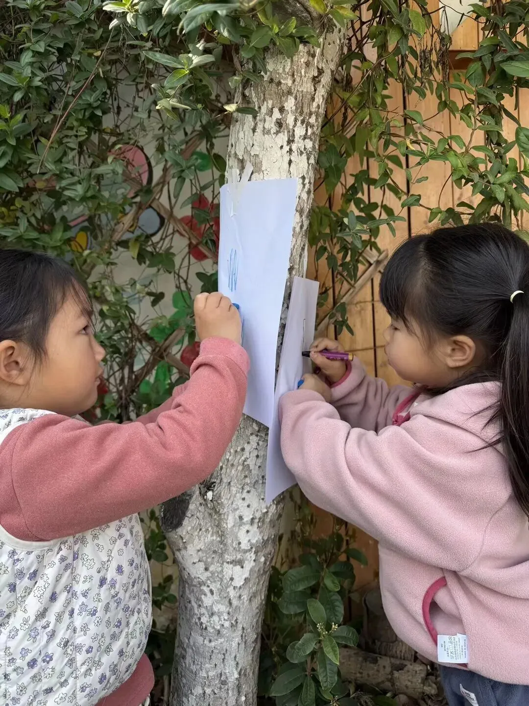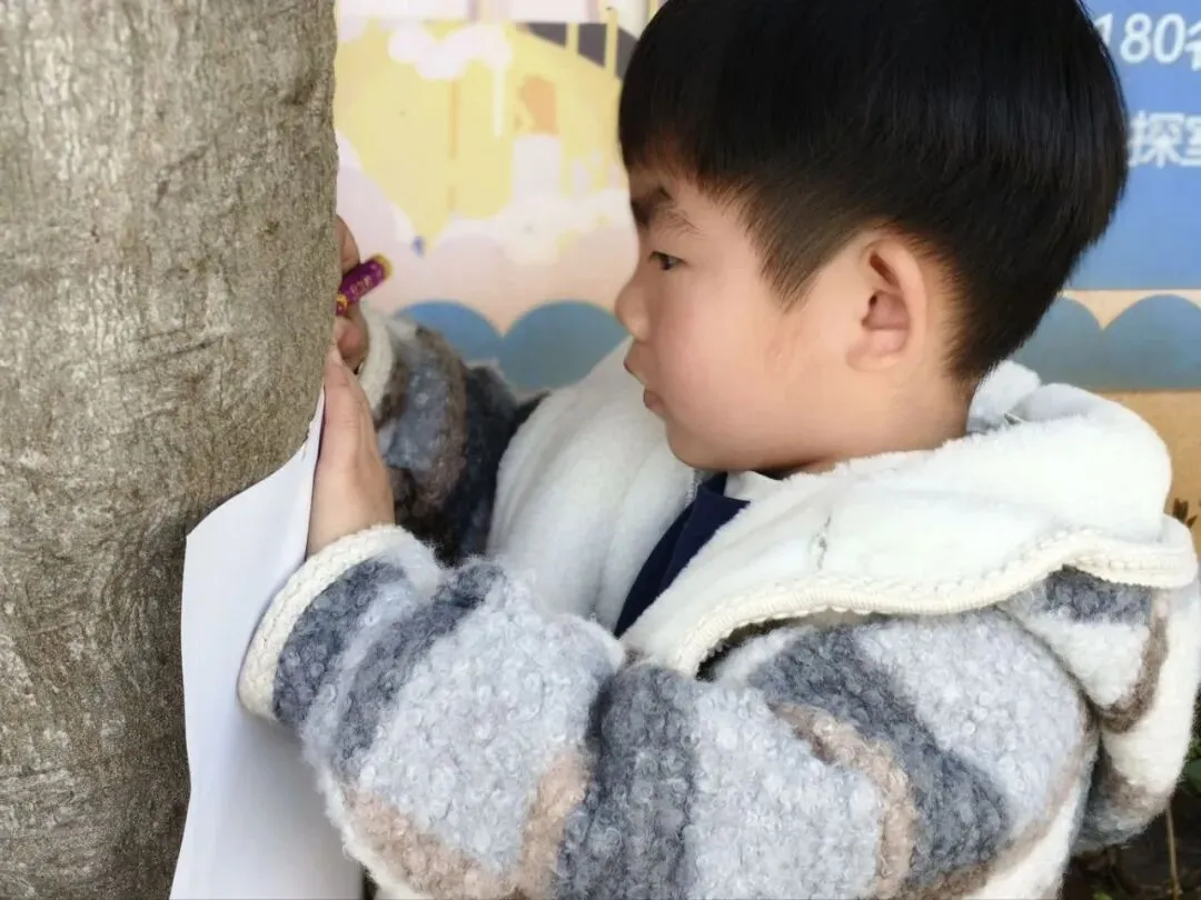 走进校园,探索树木的秘密。孩子们拿起拓印工具,轻轻按压在粗糙的树皮上,深浅不一的纹理跃然纸上,每一道纹路都是大树独有的“身份证”。通过触摸、拓印,孩子们近距离感受自然的肌理,激发对大自然的探索欲。