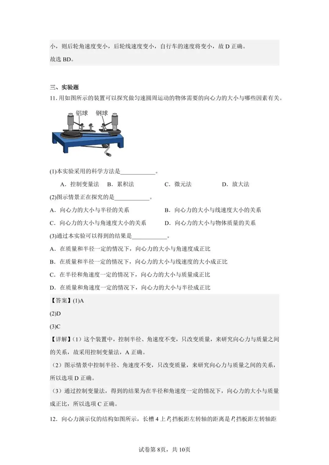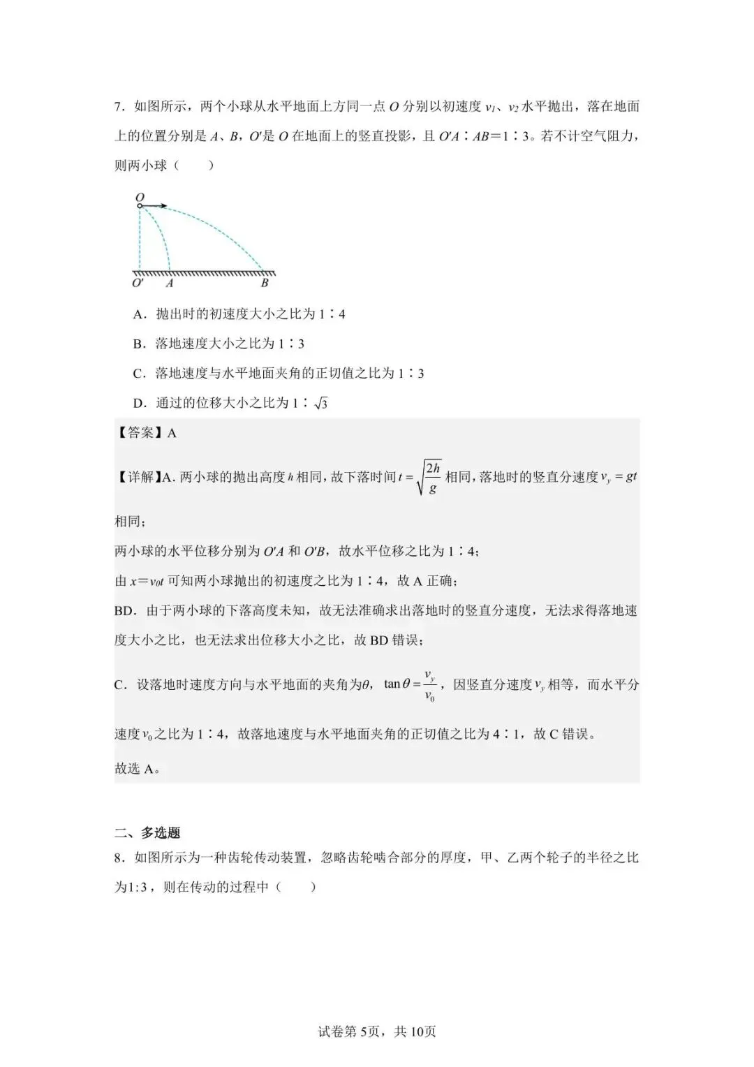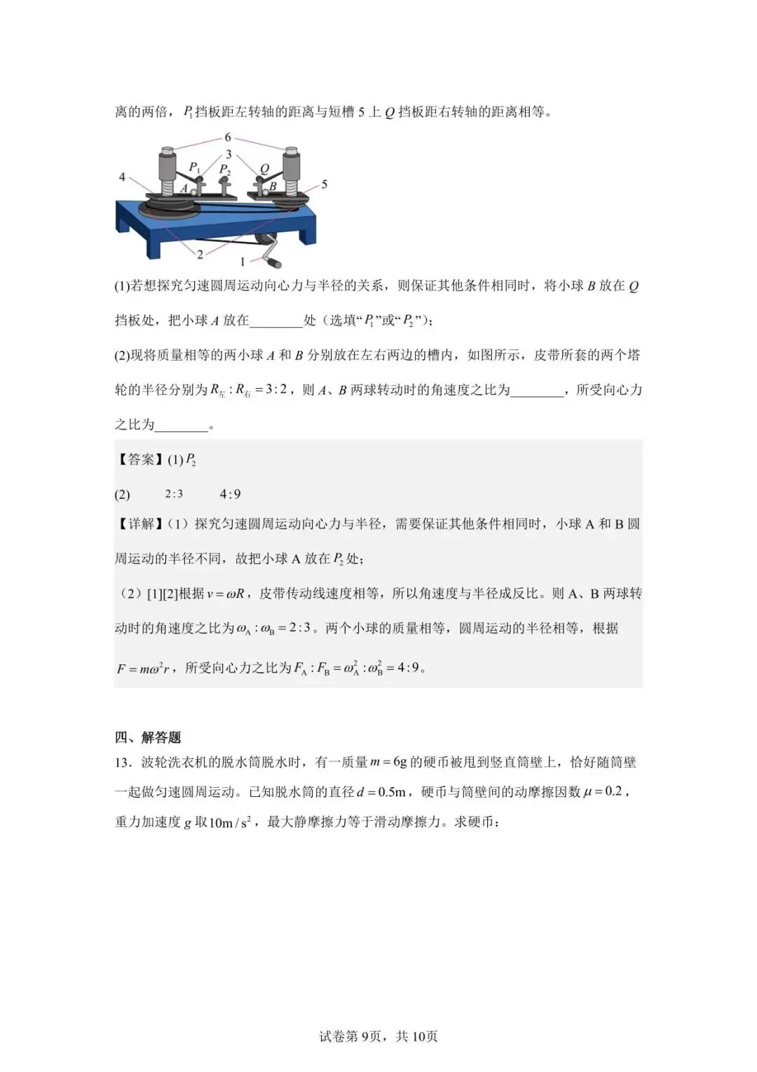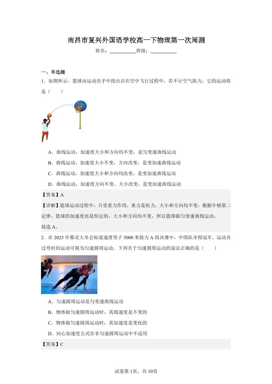 >南昌市复兴外国语学校高一下物理第一次周测答案解析
