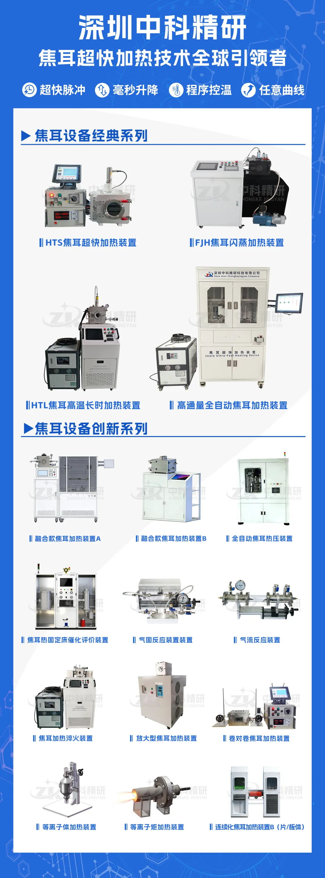 中科精研自主研发的焦耳加热设备,采用先进的毫秒级超快升温技术,可在极短时间内实现高温处理,广泛应用于纳米材料制备、催化剂合成、电池材料研发等领域。
