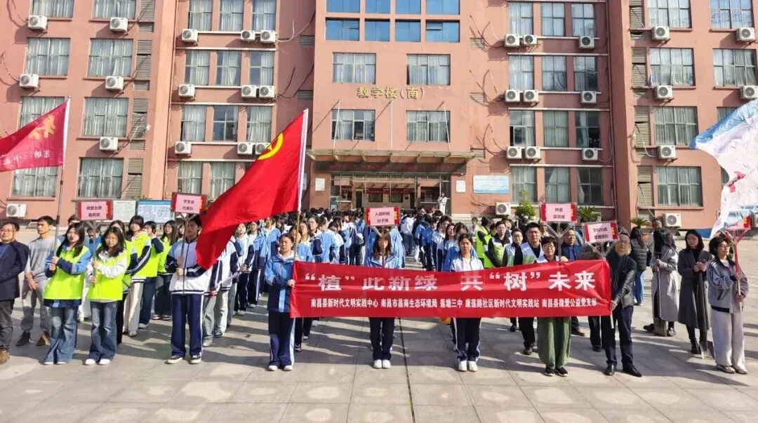3月13日上午,南昌县新时代文明实践中心联合南昌县微爱公益莲塘三中志愿服务团,在莲塘三中校园内开展“‘植’此新绿 共‘树’未来”新时代文明实践活动。