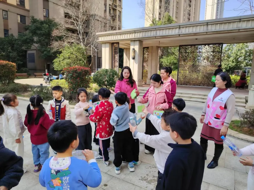 活动中,志愿者和老师向孩子们讲解植树节由来与树木的作用,传递爱绿护绿理念。随后,大家来到社区绿化带,为绿植浇水、观察植物生长,还制作悬挂植物保护牌,写下爱护花草的暖心话语。