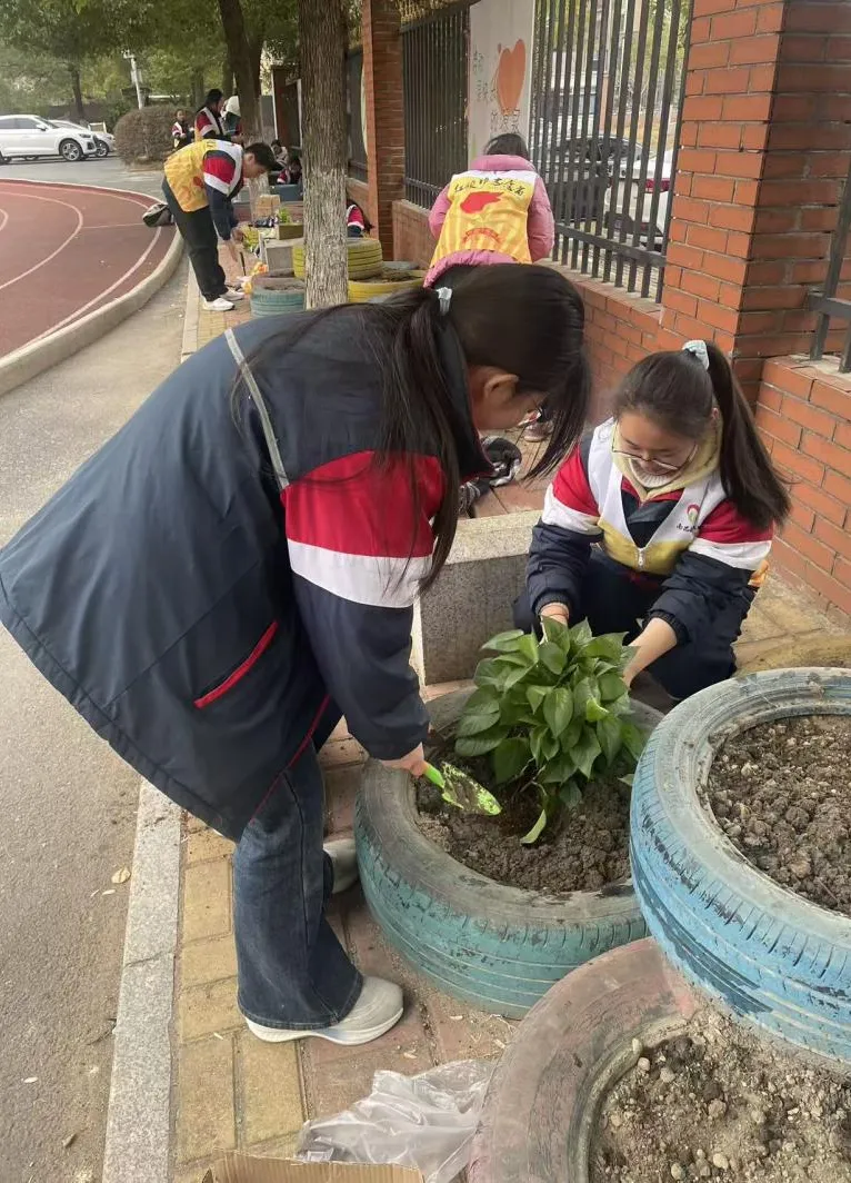红领巾志愿服务队的同学们,他们怀着对自然的热爱,奔赴学校实践基地,开启了亲手栽种绿植的实践之旅。