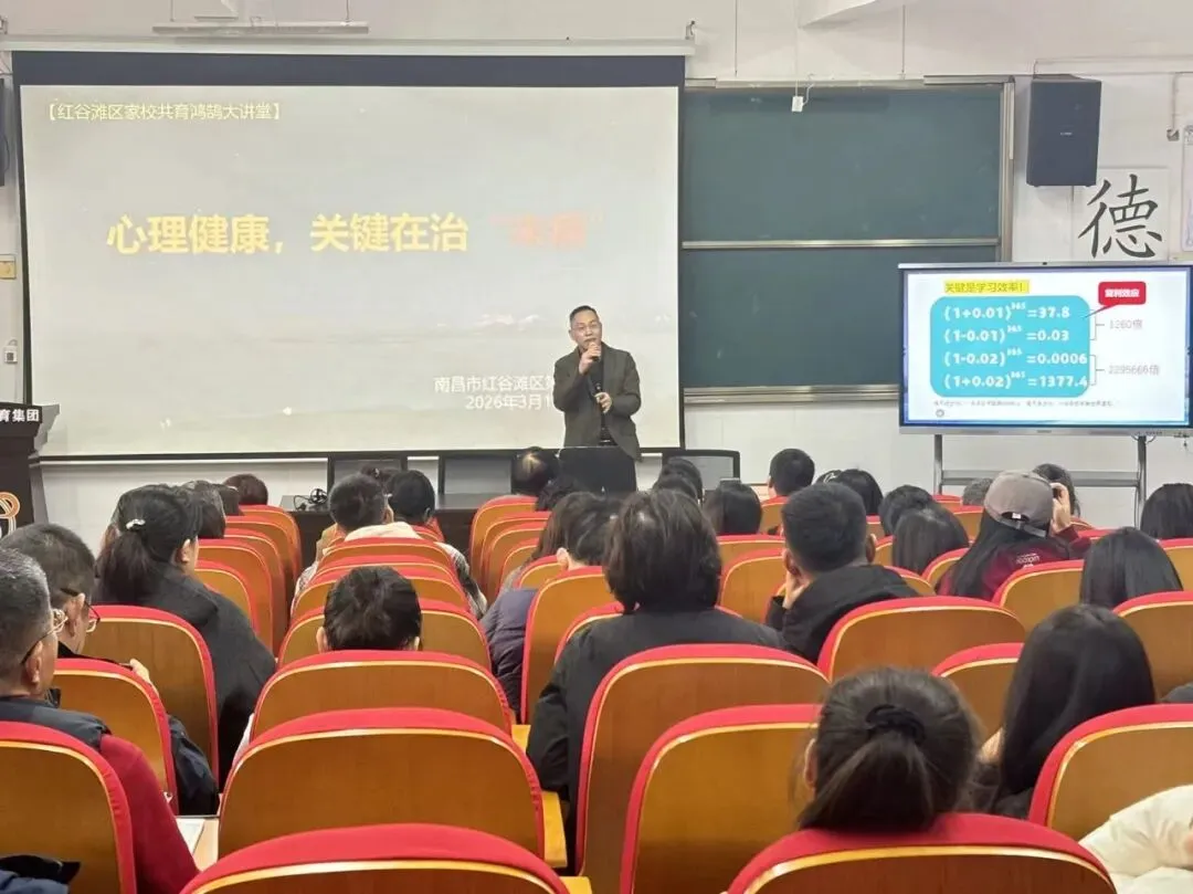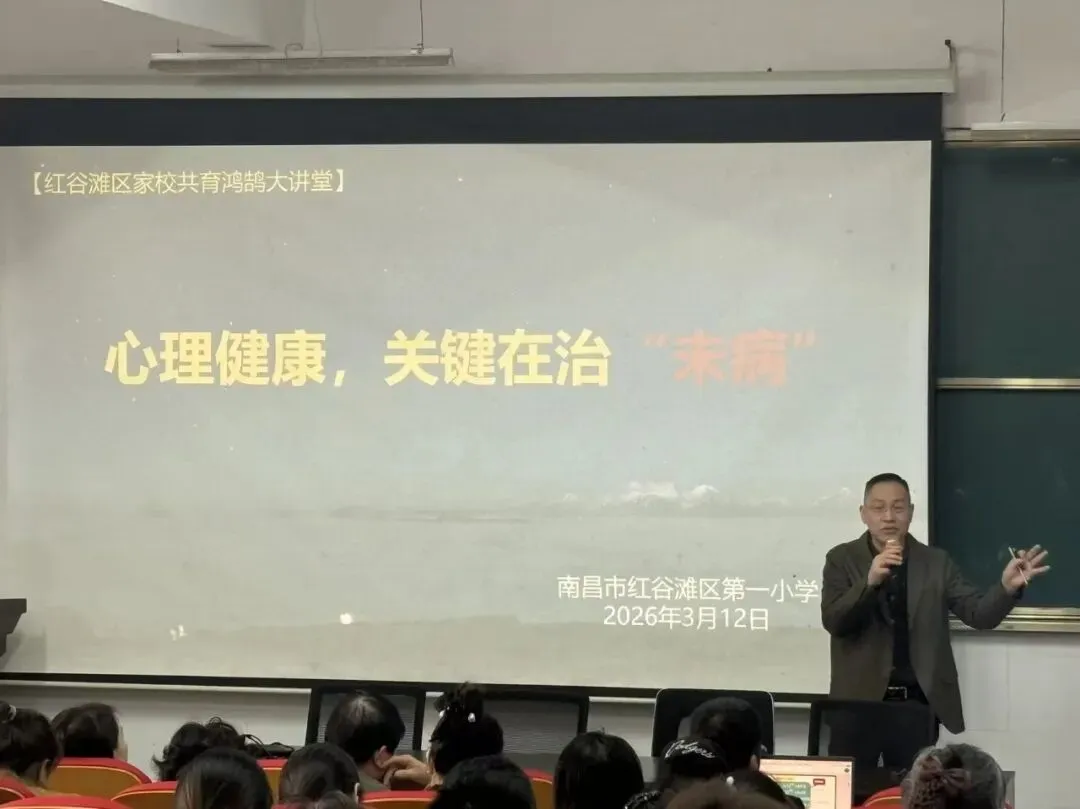 当日下午,学校邀请各班家长参加红谷滩区“鸿鹄大讲堂”第二十三期讲座。本期讲座以《心理健康,关键在治“未病”》为主题,特邀江西省教育学会家庭教育专委会副理事长、秘书长叶万军老师担任主讲。叶老师深入浅出地阐述了青少年心理健康“预防大于治疗”的核心理念,为家长和教师提供了极具操作性的家庭教育指导建议,帮助大家更好地识别、应对孩子的心理需求,为有需要的家庭提供了宝贵的专业支持。